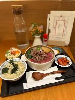 ,後者有日式昆布柴魚湯或關東風壽喜燒湯可選,而每款定食都包咗時令沙律菜、日式醃菜、味噌湯同日本白米飯;此外,仲有啲滋味小食供選擇。溫馨一提,高峰時段用餐時限為60分鐘。雖然,所賣嘅都喺較傳統嘅日式丼飯、鍋物,但卻有幾款特調飲品,分為雪奶酩系列同梳打系列,彩繪圖片睇落頗為吸引,不過,我哋就無試。除上述嘅一人前,店家仲提供一款二人餐,包指定丼飯定食黑毛和牛丼套餐L份量、鍋物定食(2揀1)、小食(3揀1)、飲品(3揀2),做緊特價$370,計落真喺幾划算。