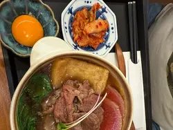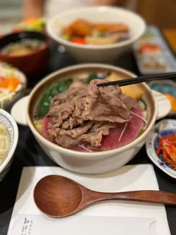 老表份鍋物定食睇落都好吸引,宮崎黑豚肉大大鍋,份量真不少,而且,啲豚肉好嫩口,又唔會話好肥,鍋底仲有唔少洋蔥、豆腐皮、野菜……等等,至於個昆布柴魚湯味道清香