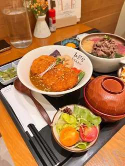 ;枱上嘅玻璃杯,更喺滿滿日式復古風格。餐廳主打喺丼飯定食、鍋物定食,前者款式不少,並分唔同嘅份量,豐儉由人