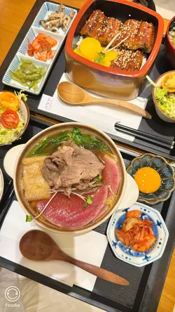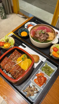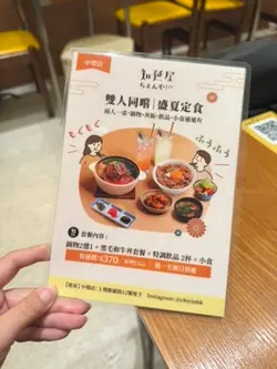 ,後者有日式昆布柴魚湯或關東風壽喜燒湯可選,而每款定食都包咗時令沙律菜、日式醃菜、味噌湯同日本白米飯;此外,仲有啲滋味小食供選擇。溫馨一提,高峰時段用餐時限為60分鐘。雖然,所賣嘅都喺較傳統嘅日式丼飯、鍋物,但卻有幾款特調飲品,分為雪奶酩系列同梳打系列,彩繪圖片睇落頗為吸引,不過,我哋就無試。除上述嘅一人前,店家仲提供一款二人餐,包指定丼飯定食黑毛和牛丼套餐L份量、鍋物定食(2揀1)、小食(3揀1)、飲品(3揀2),做緊特價$370,計落真喺幾划算。