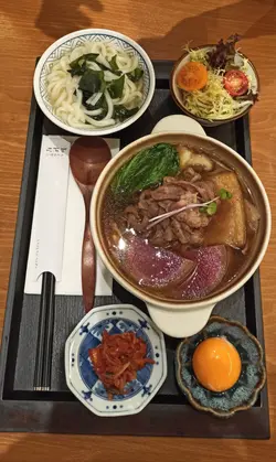 老表份鍋物定食睇落都好吸引,宮崎黑豚肉大大鍋,份量真不少,而且,啲豚肉好嫩口,又唔會話好肥,鍋底仲有唔少洋蔥、豆腐皮、野菜……等等,至於個昆布柴魚湯味道清香