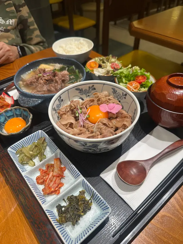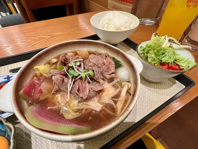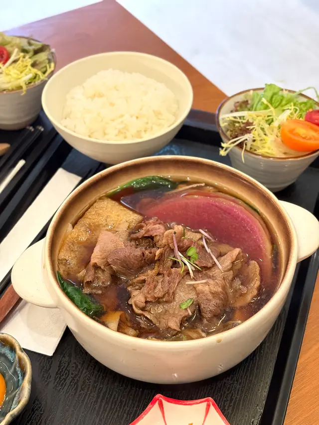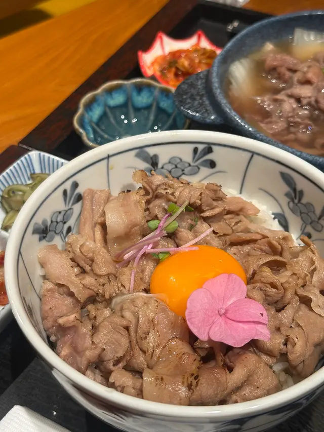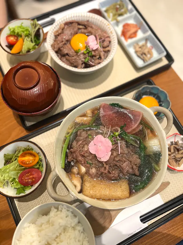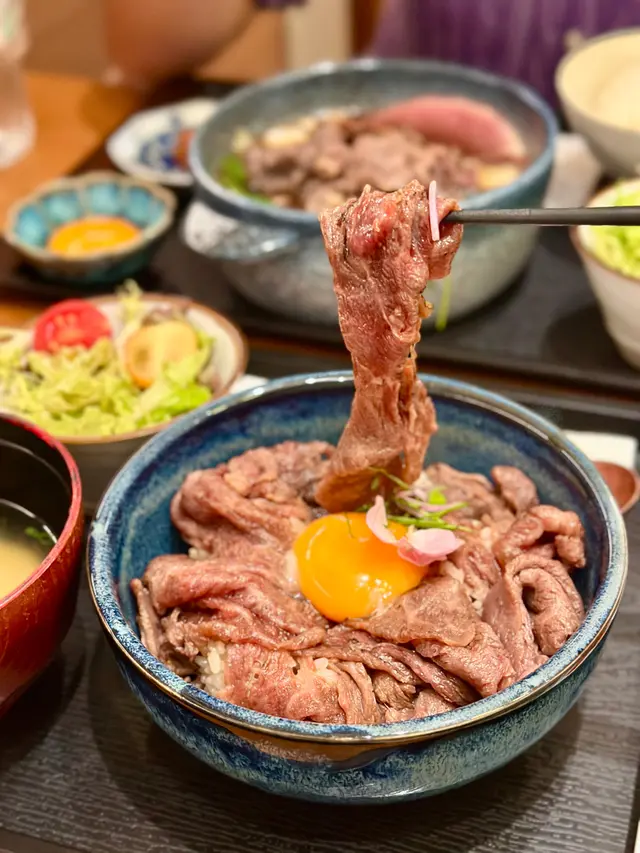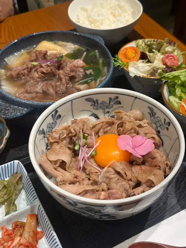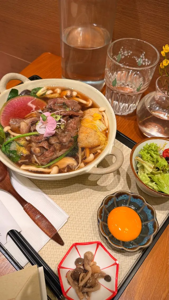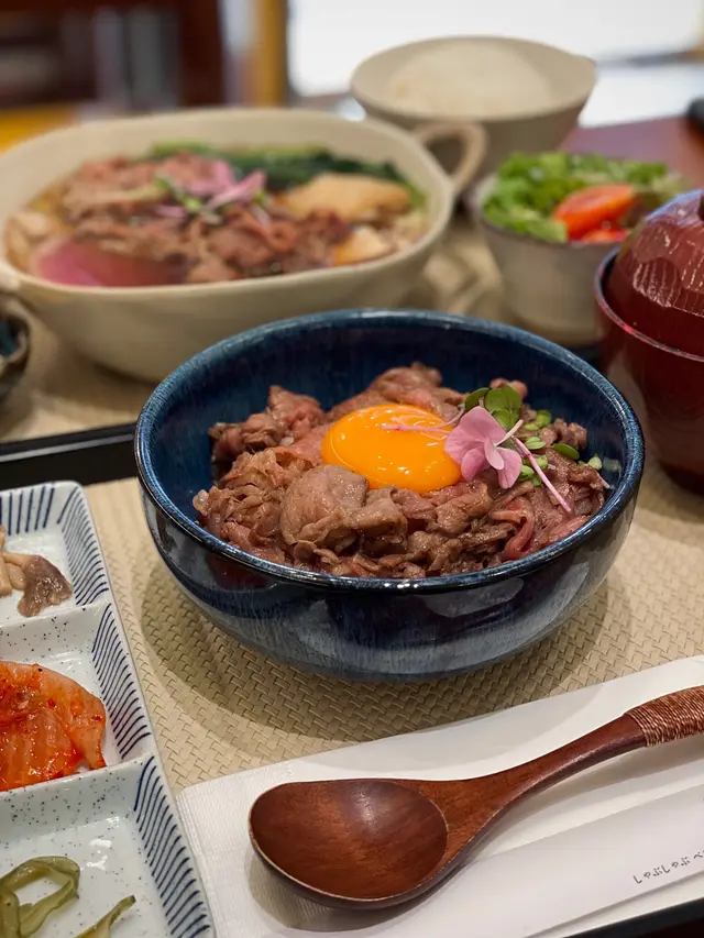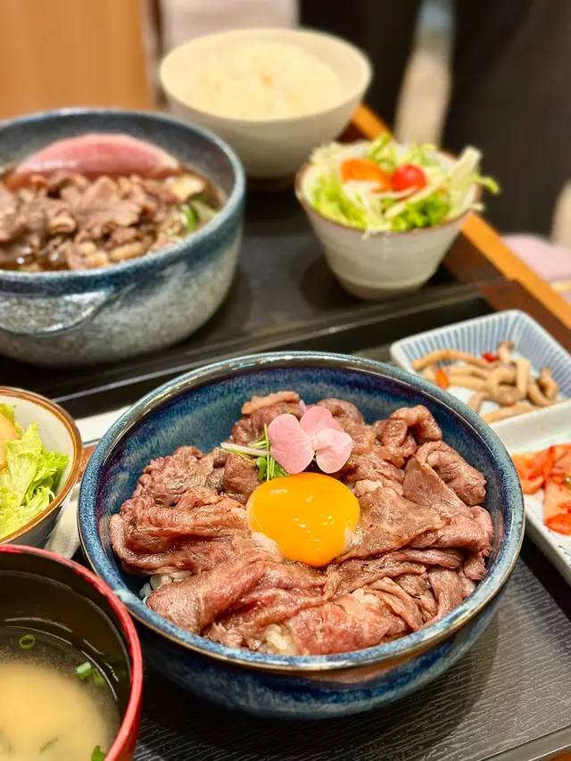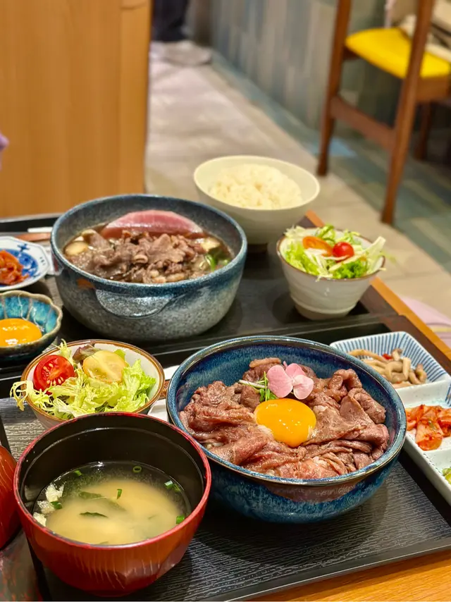 中環新開和牛黑豚丼飯鍋物定食👍🏻💕餐廳食物非常專一,主打黑毛和牛蓋飯及鍋物定食,運用高質的食材。餐廳裝修更是以簡潔的木系為主,加入昭和年代風格的燈飾和餐具,讓人放鬆的感覺。宮崎黑豚肉丼 $168/ XL size丼飯定食的肉類有分不同份量的size,客人可按自己的食量而定。宮崎黑豚的口感非常柔軟,口感嫩滑,而我揀了XL份量的肉,滿滿的黑豚肉加上滑嘟嘟的鮮嫩雞蛋,非常惹味開胃好吃! 套餐更包括了時令時菜、沙律、麵豉湯。更可免費續配菜一次,包括米飯!👍🏻日本黑毛和牛A4赤身鍋物定食 $198以高質的食材熊本和牛為主角, 以日式昆布柴魚湯為湯底,和牛的口感非常軟腍,柔軟得非常,在口中溶化!套餐同樣包括了前菜和沙律,更配以鮮嫩生蛋一隻!…查看更多