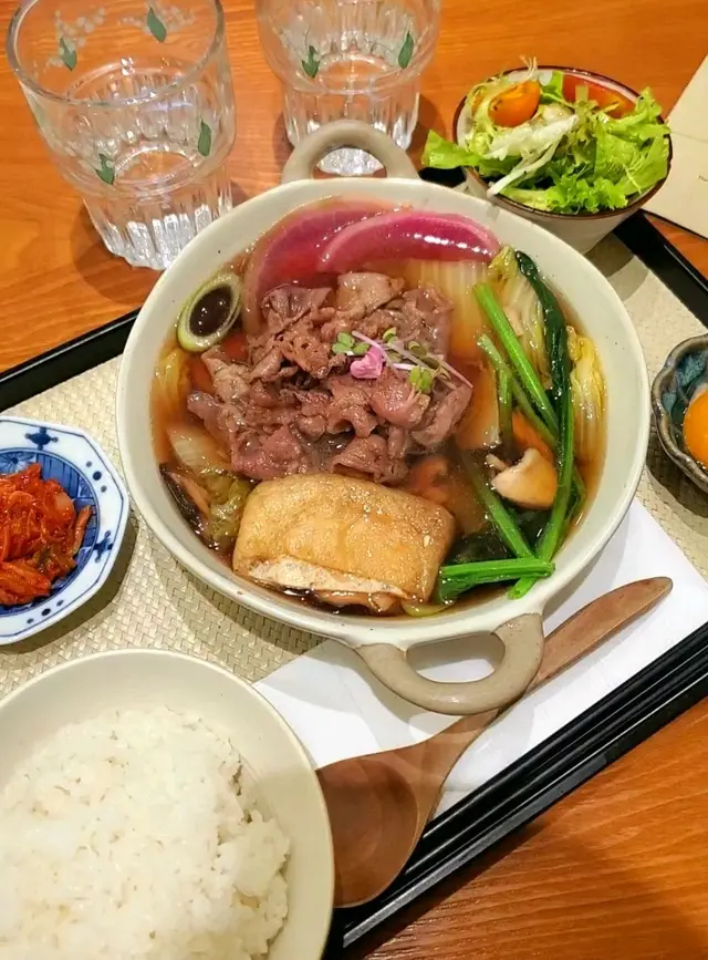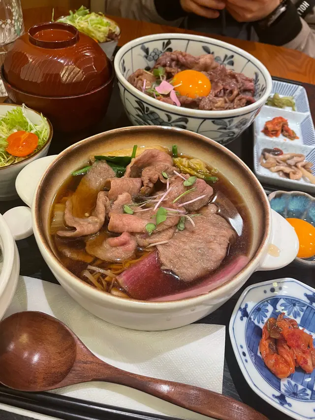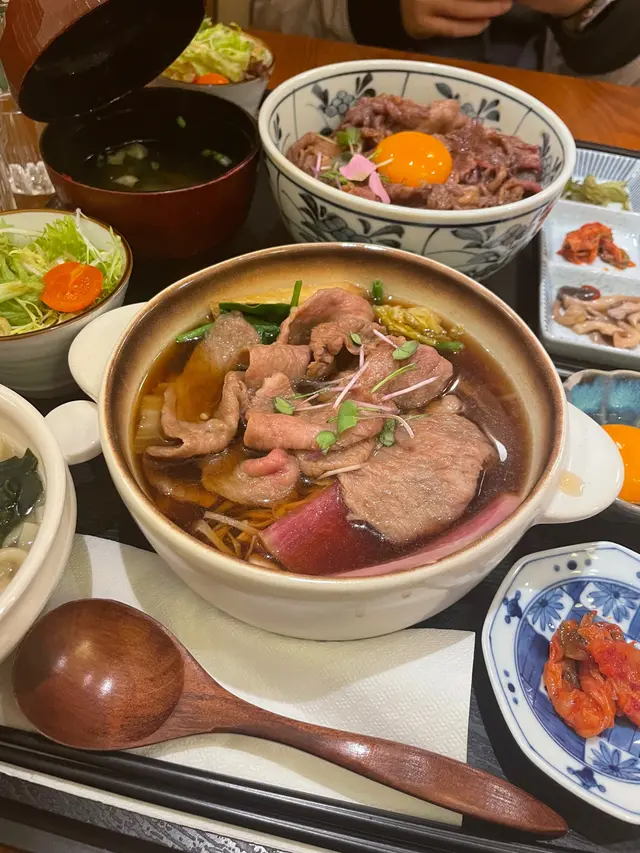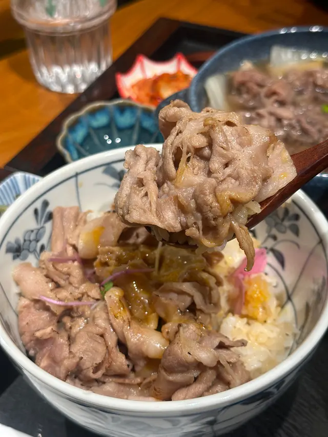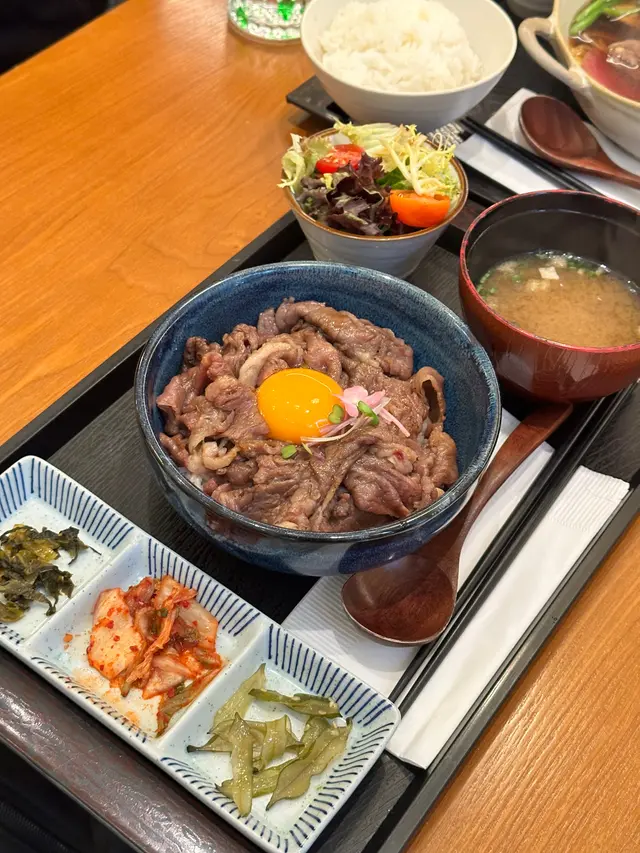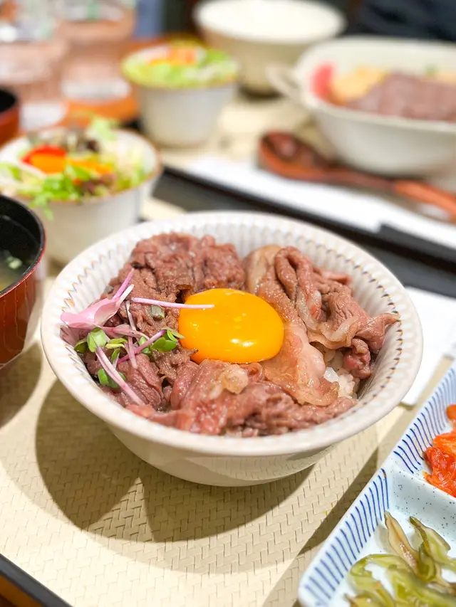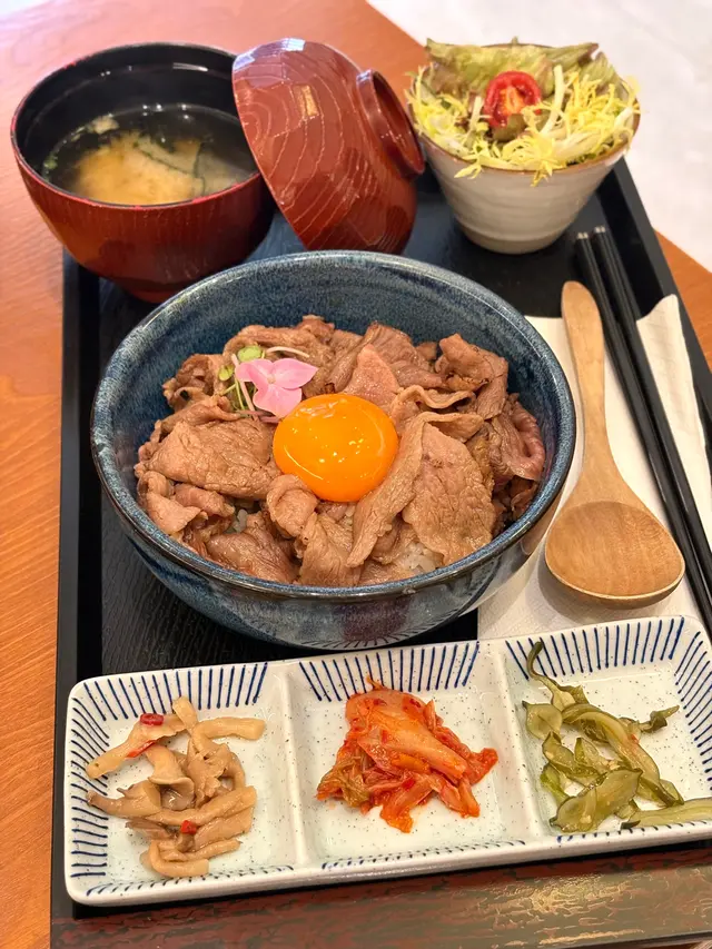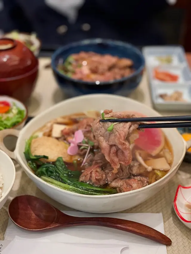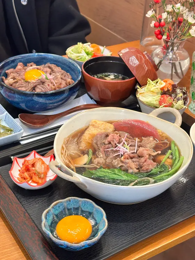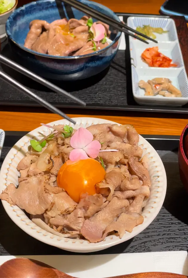 中環新開和牛黑豚丼飯鍋物定食👍🏻💕餐廳食物非常專一,主打黑毛和牛蓋飯及鍋物定食,運用高質的食材。餐廳裝修更是以簡潔的木系為主,加入昭和年代風格的燈飾和餐具,讓人放鬆的感覺。宮崎黑豚肉丼 $168/ XL size丼飯定食的肉類有分不同份量的size,客人可按自己的食量而定。宮崎黑豚的口感非常柔軟,口感嫩滑,而我揀了XL份量的肉,滿滿的黑豚肉加上滑嘟嘟的鮮嫩雞蛋,非常惹味開胃好吃! 套餐更包括了時令時菜、沙律、麵豉湯。更可免費續配菜一次,包括米飯!👍🏻日本黑毛和牛A4赤身鍋物定食 $198以高質的食材熊本和牛為主角, 以日式昆布柴魚湯為湯底,和牛的口感非常軟腍,柔軟得非常,在口中溶化!套餐同樣包括了前菜和沙律,更配以鮮嫩生蛋一隻!…查看更多
