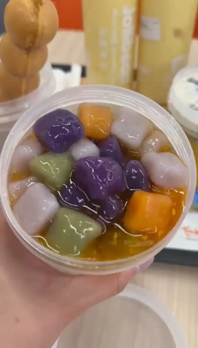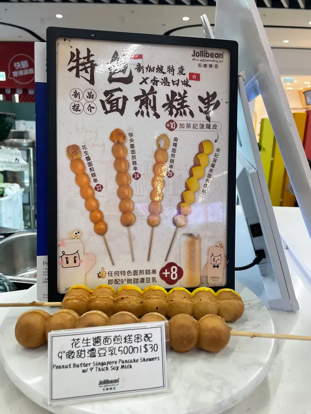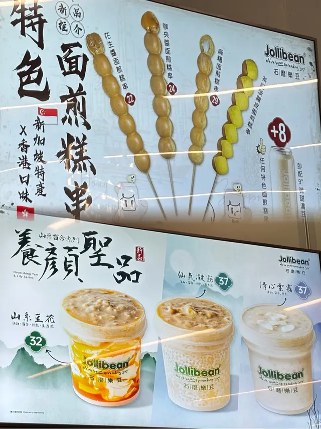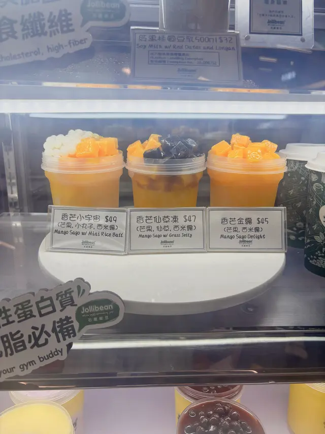 食完飯想食下甜品小食, 就黎左呢度food court既石磨樂豆, 佢係來自新加坡既豆乳店, 每日石磨鮮製👍🏻, 提供好多不同款的健康豆乳、甜品、飲品和輕食! 仲有季節限定款或期間限定, 唔會悶, 成日可以試新味道, 正😋🧡招牌咖央面煎糕 (加茶記菠蘿🍍脆) $42 (轉左跟餐有野飲)呢款小食都係第一次食, 原來係新加坡人氣小食, 食落好似雞蛋仔, 外脆內軟, 入面餡料係小小咖央醬 (可自選花生醬/麻糬/咖央餡), 外層特別加左港式嘅菠蘿脆皮, 令口感更香口有層次, 小小煙韌, 仲係微暖, 好味💛香芒小宇宙 (芒果🥭,小丸子, 西米露) $49芒果甜而不酸,小丸子煙煙韌韌, 西米露通透, 煮得剛好, 三樣加埋好夾, 很濃郁香滑的風味, 喜歡💜三色芋圓豆腐花$34芋圓Q彈口感, 豆腐花香滑, 好大碗, 好抵食🌟樽裝木瓜雪耳雪梨豆乳$36木瓜好腍而香, 雪梨清甜,雪耳爽,好多材料, 混合埋豆乳, 滋補之選 🌟樽裝桂圓桃膠豆乳$42桂圓桃膠養顏又滋潤,養血安神, 好岩女士, 勁多桃膠, 份量十足 🌟9°微甜濃豆乳500ML (跟餐) ~ 豆味幾濃, 不會好甜, 含有豐富的植物性蛋白質、鈣、鐵、大豆異黃酮等營養素,對人體健康大有裨益…查看更多