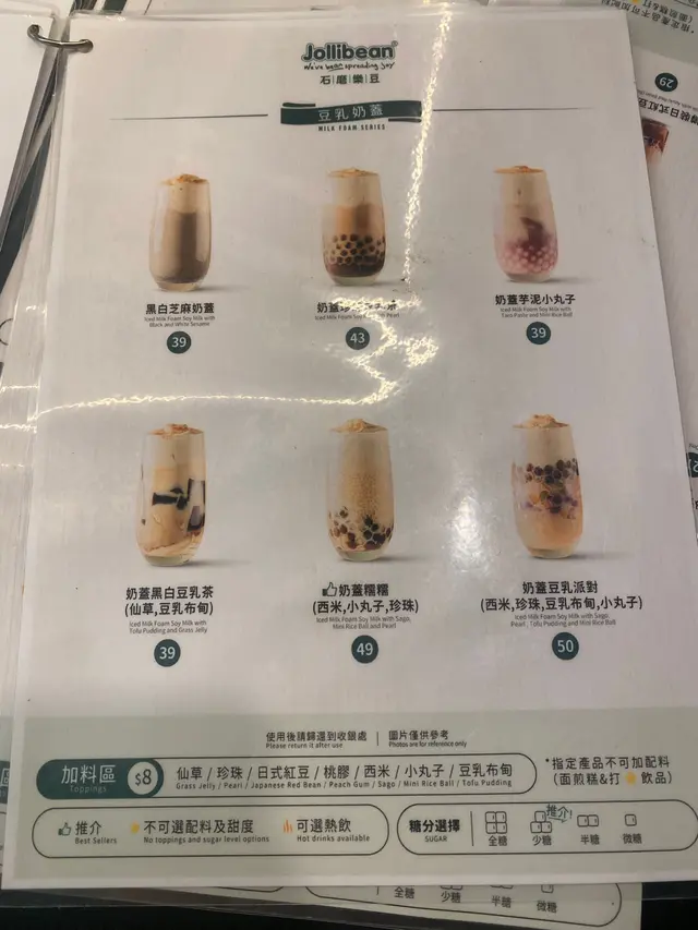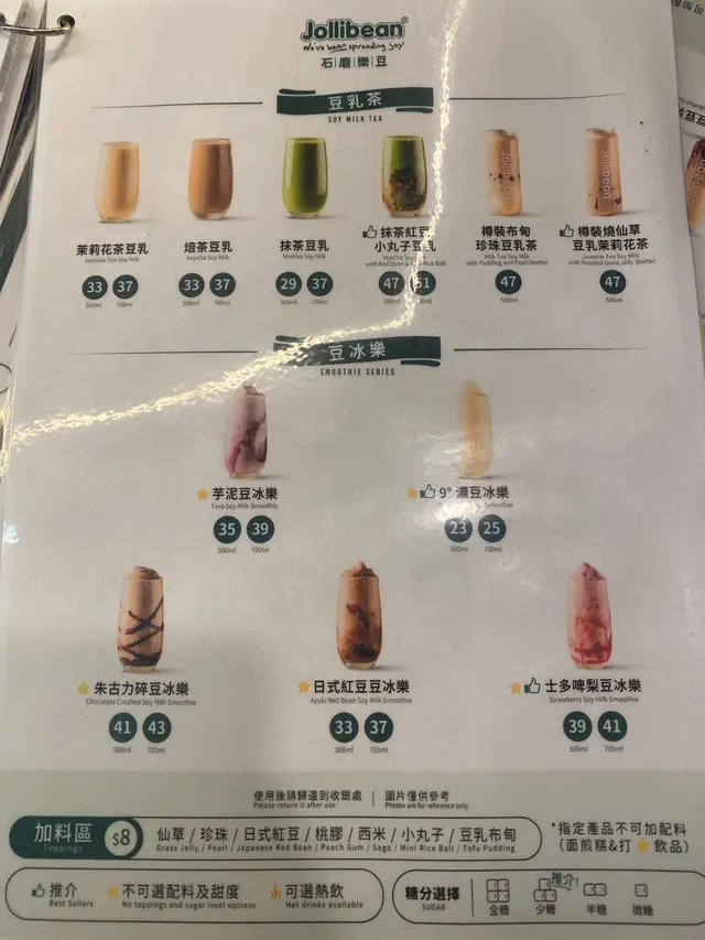 ,嚴選A級加拿大黃豆,研製出新鮮健康的豆乳飲品,高營養又抗氧化保留新加坡傅統小食,更揉合香港地道特色風味Jollibean 因季節都會推出期間限定款,最近出咗開心果豆乳、豬仔包、及牛角酥全部吐司免費升級香脆豬仔包, 加$5可以轉7吋牛角酥,各分店不時會有甜品/飲品加購優惠每天行出戶外都已經熱辣辣,睇到豆冰樂系列幾透心涼我又鍾意飲豆乳味道嘅飲品