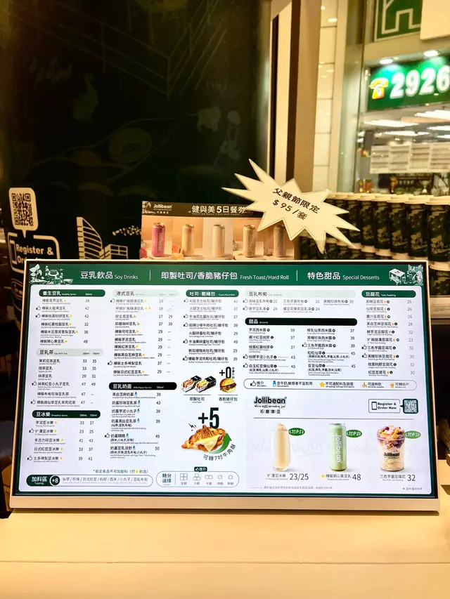 來自新加坡🇸🇬3️⃣0️⃣老字號嘅❣︎石磨樂豆Jollibean❣︎嚴選A級加拿大🇨🇦黃豆,每日石磨鮮製😋香港🇭🇰設有多間分店,經常推出唔同嘅期間限定款式😬最近出咗開心果豆乳,豬仔包同牛角酥,所有吐司可以免費升級香脆豬仔包, 加$5仲可以轉7吋牛角酥添,仲有甜品/飲品加購優惠。❣︎套餐🅱️沙嗲牛肉牛角酥❣︎$43即叫即製😋打開個袋已經聞到香噴噴🤤牛角酥酥脆,配埋香濃沙嗲牛肉,味道超夾。套餐加購❣︎粒粒仙草❣︎$15份量超大杯🤤內有黑糖,珍珠,椰乳,芋圓,仙草同小丸子🍡超豐富,仙草口感順滑,各款配料煙煙韌韌,甜度適中,岩晒而家炎熱🥵嘅天氣。❣︎(凍)黑白芝麻豆腐花❣︎$28黑芝麻同豆花豆味濃郁,十分滑嫩。❣︎朱古力碎豆乳豆冰樂❣︎500ml$41口感好似思樂冰一樣,豆味濃郁,朱古力味唔太甜,唔鍾意飲太甜嘅呢杯岩晒你口味,超透心涼。❣︎樽裝9°微甜濃豆❣︎500ml$19健康之選,豆乳柔和,有天然嘅微甜。…查看更多