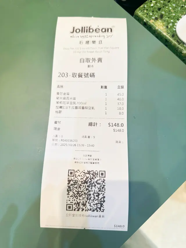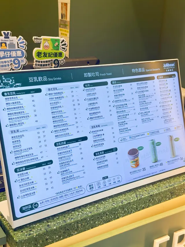 其實👷🏻♀️細孖本身唔係咩豆乳控,但成日見到JolliBean出新款,今次仲要有限定「開心果豆乳」,忍唔住過嚟試吓!加上佢哋成日有季節限定嘢飲同甜品,今次仲有豬仔包同牛角酥,真係好吸引!另一個原因係,JolliBean嘅吐司可以免費升級做香脆豬仔包,仲可以加$5轉牛角酥,咁抵嘅優惠真係好少見,所以點都要試吓!🥢開心果豆乳(500ml,$48)因為見到佢係期間限定,仲要係開心果味,平時好少見!一入口,堅果味好濃,但唔會太甜,豆乳嘅滑溜同開心果嘅香氣好夾,飲完成杯都唔會膩。如果鍾意Nutty味嘅朋友,真係要試吓!🥢香芋豆乳凍($24)本身係香芋控,見到有香芋豆乳凍即刻心心眼!質地似布甸又似豆腐花,芋頭味自然,唔會假假哋,甜度剛剛好,食完唔會覺得滯🥢朱古力碎豆冰樂(700ml,$43)朱古力碎加豆乳冰沙,諗起都覺得正!飲落朱古力味濃,但豆乳嘅味道依然出到,唔會比朱古力搶晒,仲有啲幼滑冰嘅口感🥢茉莉花茶豆乳(700ml,$35)想試吓清新啲嘅選擇,茉莉花茶加豆乳,聽落已經好吸引。飲落真係有淡淡花香,茶味同豆乳平衡得好好,揀無糖都唔錯,適合鍾意清淡口味嘅人抵食Tips!- 免費升級豬仔包:叫吐司一定要升級,香脆口感正過普通吐司好多!加$5轉牛角酥:牛角酥外脆內軟,牛油香超濃,加少少錢就食到高質嘢!分店優惠:唔同分店會有唔同加購優惠,記得問吓店員,可能平多幾蚊!#世一豆乳 #豆乳之鬼 #開心果 #豆乳 #牛角包 #豆腐花 #甜品 #療癒美食 #打卡able #相機食先 #JollibeanHK #石磨樂豆 #啟德體育園 #YohoMix #裕民坊 #德福廣場 #都會駅 #dessert #foodie #ComfortFood #觀塘美食 #觀塘探店 #觀塘甜品…Read More