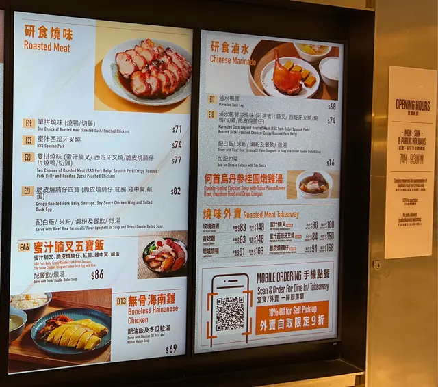 堂食單點餐牌 85 折(不包括飲品及甜點)