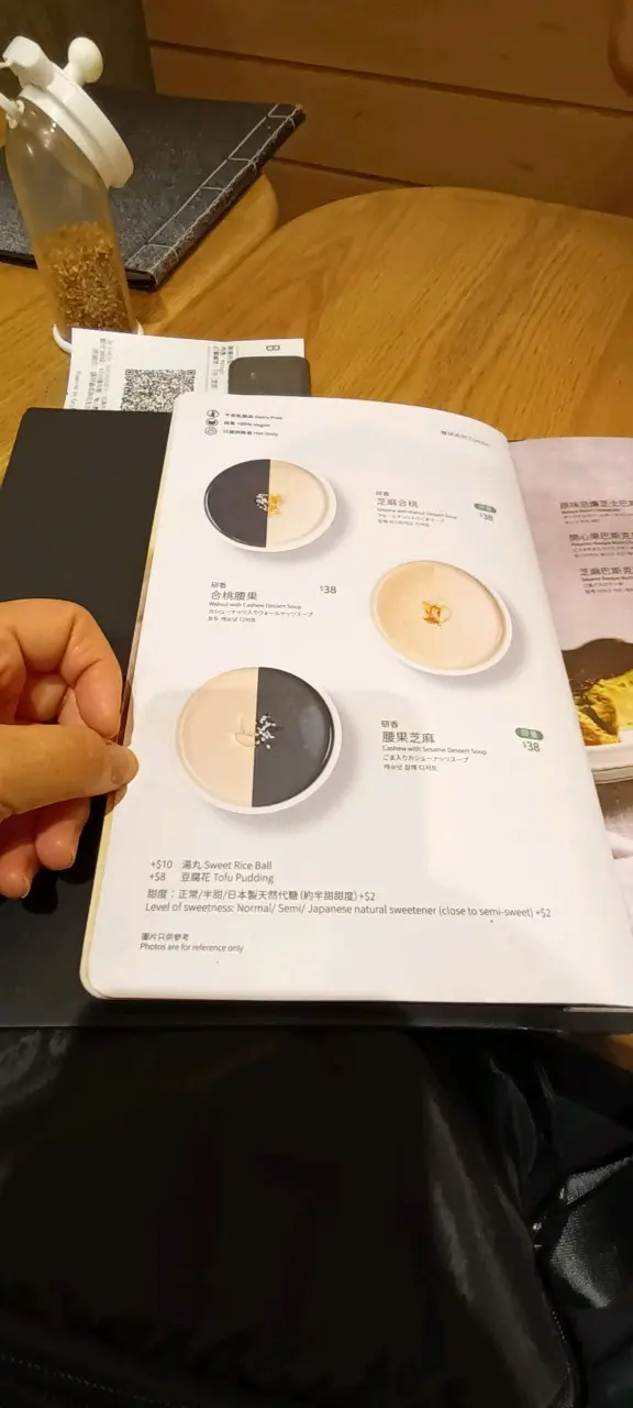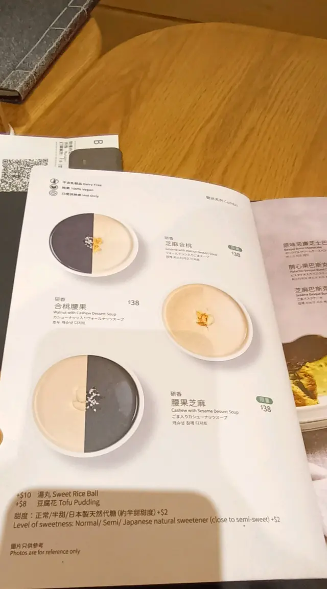今天和閨蜜去尖沙咀逛街,行到腳累了,肚子也餓了。朋友想吃中式糖水,推薦「研香」,店內裝修很溫馨!讓人路過就想進去坐坐♥️打卡👍我們點了4款港式糖水:1️⃣ 【聰明仔合桃露】3️⃣9️⃣👉 選了半甜版,甜度剛好!合桃香味濃郁,低溫研磨,口感絲滑細膩✨2️⃣ 【芝麻合桃】4️⃣0️⃣👉芝麻+合桃的组合很搭配!香氣比純合桃露更厚重,多了一仍份芝麻香撲鼻,口感細膩綿滑密。3️⃣ 【椰皇桃膠嫩蛋白】7️⃣5️⃣👉 熱食推薦!椰皇清香扑鼻而来🥥 桃膠煮得軟糯Q彈,蛋白嫩滑,養生女孩GET✔️4️⃣ 【抹茶鮮奶豆花】4️⃣5️⃣🌟抹茶控會愛上!🍵宇治抹茶+鮮奶的搭配清新不膩,豆花入口即化,很有層次感!總結:每碗糖水都能吃出匠心研磨的功夫,來一場港味沉浸式體驗😋 📌小貼士:門口有[自助外賣]售票機,很方便!…查看更多