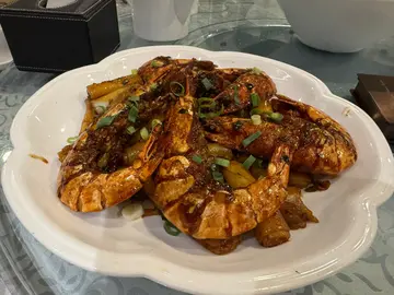 今晚和家人慶祝父親節,由於爸爸一向是‘’鴻星‘’忠粉,我們便特意去由前鴻星集團副行政總裁創辦,位於中環的‘’碧儷苑‘’晚膳。酒樓環境雅致,座位舒適。除了主餐牌外,亦有多款套餐供食客選擇。我們選了六位用的商務套餐,再加了兩款小菜。六人商務套餐:🦪鍋貼金蠔~這道菜賣相已經先聲奪人!乾冰效果令金蠔窩巴一上枱便煙霧瀰漫,打卡度十足。窩巴香脆可口,金蠔咸香惹味。🥣杏汁白肺湯~湯料十足,湯頭鮮甜滋潤。🦐豉油王煎虎蝦伴腸粉~虎蝦超級巨型,腸粉吸收了蝦的鮮味,加上豉油濃香,令人吃到停不了口!🐟露筍油泡鮮班球~班球啖啖肉,露筍清甜爽口。🪹🍄🟫蠔皇南非鮑魚燴花菇~鮑魚軟糯,花菇厚身,非常入味。🐔手淋脆皮炸子雞~雞肉嫰滑,外皮香脆。🍚干貝蝦仁蛋白炒飯~炒飯配料豐富,包括干貝,蛋白及蝦仁等,加上少少薑粒,非常香口。🥧金絲貢棗糕~棗皇糕口感軟糯,棗味香濃。散叫小菜:🐮陳皮砵酒炆牛尾~罕有以木瓜及陳皮炮製的牛尾,炆得腍身,滿滿的骨膠原感。把牛尾及木瓜放於酥餅上吃,令口感更突出。🥢蝦乾小炒皇~小炒皇配料吸引~蝦乾、韮菜,魷魚及菜圃等,味道微辣惹味。今晚全場爆滿,幸而我們預早兩星期前訂了位呢!…さらに見る