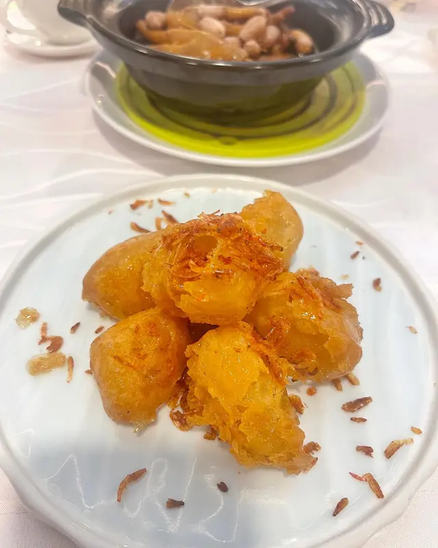 商務套餐(6位用)$2280好味指數:😋😋😋😋😋抵食指數:💲💲💲💲環境舒適:😌😌😌😌環境衛生:🧹🧹🧹🧹🧹服務質素:💁🏼♀️ 💁🏼♀️ 💁🏼♀️ 💁🏼♀️💁🏼♀️與老爺奶奶一家慶祝父親節,去了中環這間中菜餐廳。點了商務套餐。共有6款食物,湯及甜品。鍋貼金蠔做法特別。以往金蠔多是一整隻吃。造成鍋貼,是第一次。金蠔不腥。粉漿夠薄,炸成金黃色,又不油。連同鍋巴一起吃,感覺更脆。杏汁白肺湯溫和順滑。非常足料,有豬肺、雞腳等。豉油皇煎虎蝦伴腸粉的蝦🦐好大隻。蝦頭有蝦膏。蝦肉爽口。滑溜的腸粉吸滿豉油。腸粉口感不錯,不會過腍。露筍油泡鮮班球有微微煎香過,啖啖肉,肉質嫩滑。露筍爽口。另外加了燈籠椒🫑,整碟色香味俱全。蠔皇南非鮑魚燴花菇夠腍又夠入味。鮑魚鮮味十足。花菇厚身,味道濃郁。費時製作的手淋脆皮炸子雞醃得夠味但又不太咸,皮脆肉滑,不乾身。干貝蝦仁蛋白炒飯炒至粒粒分明。干貝提升整體香氣。蝦仁🍤爽口。金絲貢棗糕夠煙韌,棗味醇厚,甜度適中。餐廳有另外送我們冰凝小企鵝🐧及紅袍荔枝。小企鵝內是紅豆🫘蓉,而荔枝內是奶皇。…さらに見る