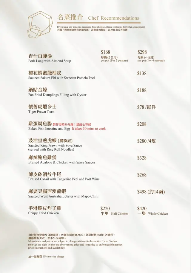 今晚和家人慶祝父親節,由於爸爸一向是‘’鴻星‘’忠粉,我們便特意去由前鴻星集團副行政總裁創辦,位於中環的‘’碧儷苑‘’晚膳。酒樓環境雅致,座位舒適。除了主餐牌外,亦有多款套餐供食客選擇。我們選了六位用的商務套餐,再加了兩款小菜。六人商務套餐:🦪鍋貼金蠔~這道菜賣相已經先聲奪人!乾冰效果令金蠔窩巴一上枱便煙霧瀰漫,打卡度十足。窩巴香脆可口,金蠔咸香惹味。🥣杏汁白肺湯~湯料十足,湯頭鮮甜滋潤。🦐豉油王煎虎蝦伴腸粉~虎蝦超級巨型,腸粉吸收了蝦的鮮味,加上豉油濃香,令人吃到停不了口!🐟露筍油泡鮮班球~班球啖啖肉,露筍清甜爽口。🪹🍄🟫蠔皇南非鮑魚燴花菇~鮑魚軟糯,花菇厚身,非常入味。🐔手淋脆皮炸子雞~雞肉嫰滑,外皮香脆。🍚干貝蝦仁蛋白炒飯~炒飯配料豐富,包括干貝,蛋白及蝦仁等,加上少少薑粒,非常香口。🥧金絲貢棗糕~棗皇糕口感軟糯,棗味香濃。散叫小菜:🐮陳皮砵酒炆牛尾~罕有以木瓜及陳皮炮製的牛尾,炆得腍身,滿滿的骨膠原感。把牛尾及木瓜放於酥餅上吃,令口感更突出。🥢蝦乾小炒皇~小炒皇配料吸引~蝦乾、韮菜,魷魚及菜圃等,味道微辣惹味。今晚全場爆滿,幸而我們預早兩星期前訂了位呢!…查看更多