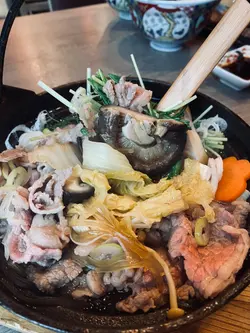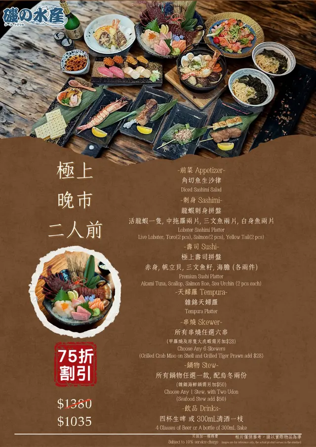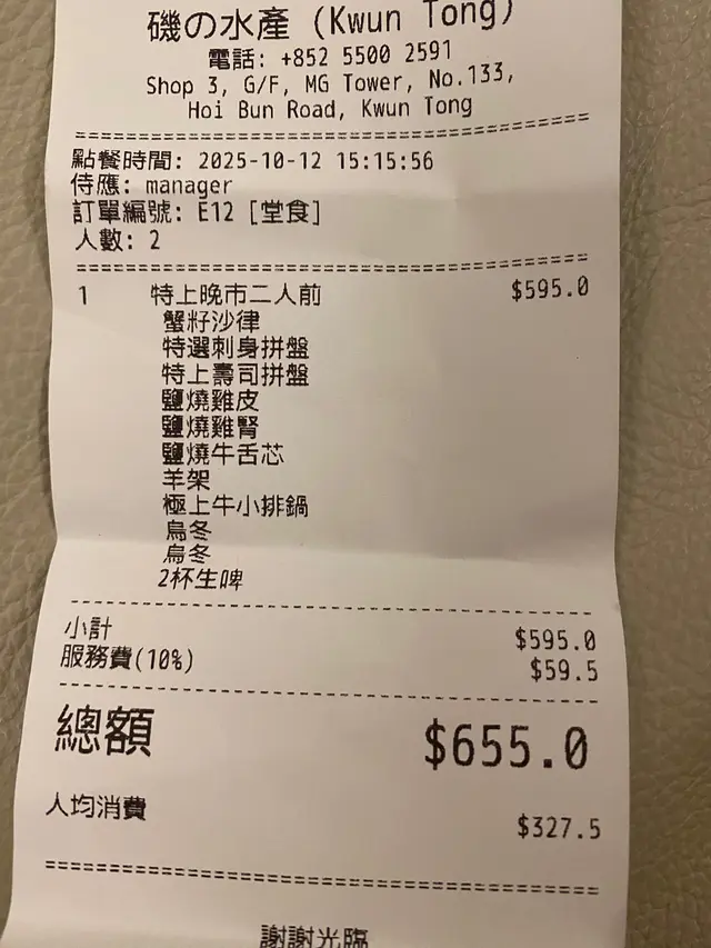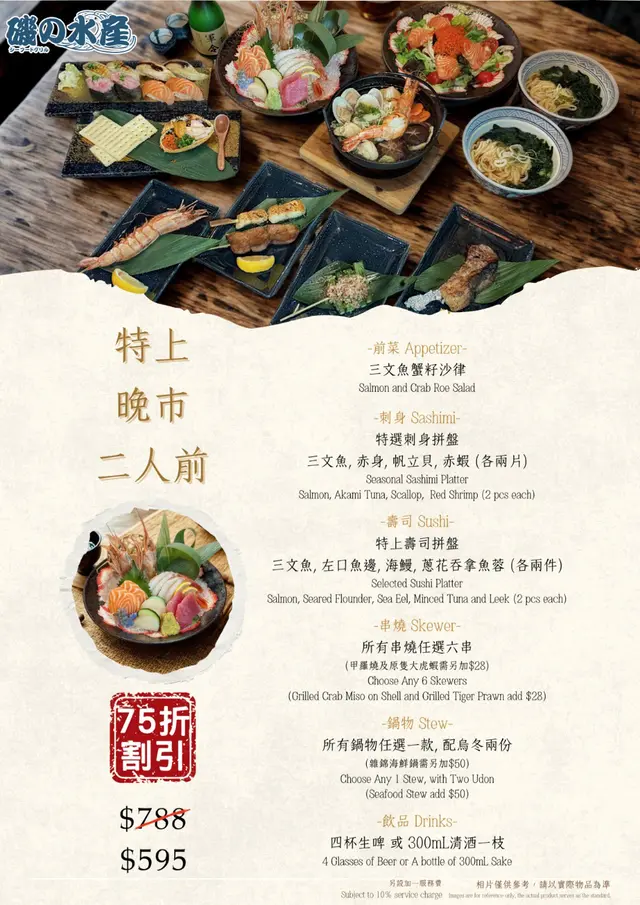 * 前菜和冷盤: 以清爽的蔬菜沙律和新鮮的吞拿魚、三文魚刺身拼盤開場。* 特選刺身拼盤: 包含多種當季新鮮生魚片,包括特大蝦,鮮甜爽脆,鮮味特級帶子,三文魚片,三樣都非常鮮味,回味無窮。* 特上壽司拼盤: 精心挑選的高級壽司組合,包含多款三文魚、鰻魚、火炙鰈魚壽司。* 鹽燒雞皮、鹽燒雞腎、鹽燒牛舌芯、羊架:多款居酒屋風格的串燒,以鹽烤方式烹調,香口惹味。* 極上牛小排鍋: 主菜之一,以高級牛小排為主要食材的日式火鍋或鍋物,提供熱騰騰的飽足感,爽口彈牙稻庭烏冬則作為主食。* 飲品:搭配串燒和火鍋非常合適,完美地平衡了串燒的油膩感和火鍋的風味。…查看更多