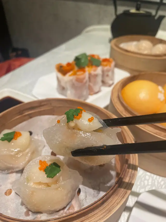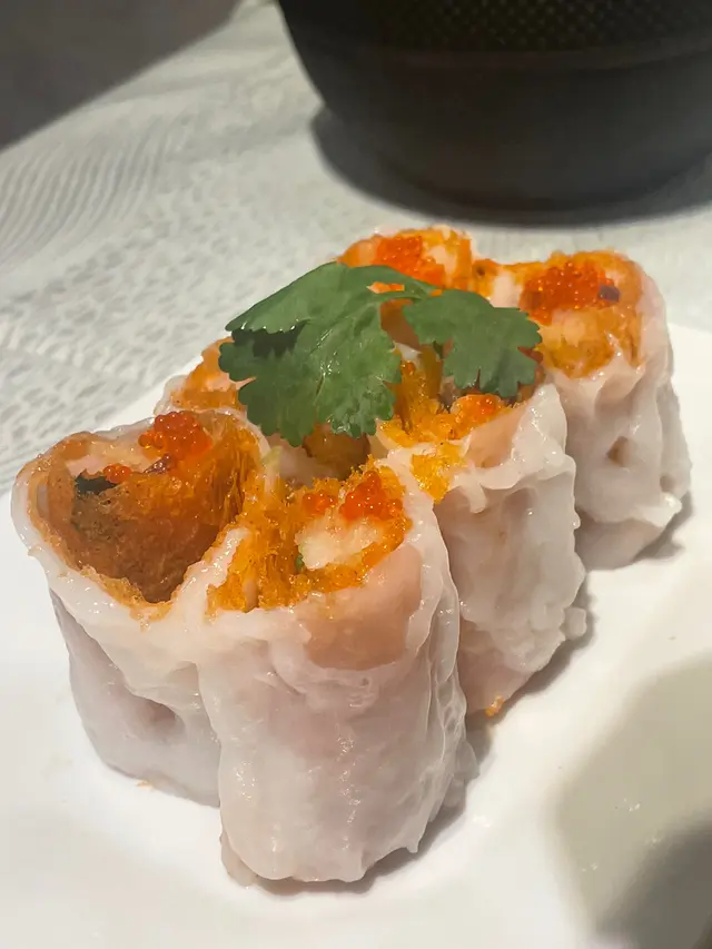龍蝦炒米粉全晚最鍾意呢碟。佢同平時酒樓嘅龍蝦炒伊麪味道唔同,係用咗味道濃郁嘅龍蝦湯汁,撈埋龍蝦肉同埋炒米粉。龍蝦汁嘅味道香濃鮮甜,龍蝦肉都好爽口鮮甜。好味!👌🏼古法金錢雞其實就係一嚿雞肝上邊插住一嚿肥豬肉,再點甜甜地嘅蜜糖汁。雞肝質地有啲乾,肥膏整得幾爽口。雖然係好邪惡,但味道唔錯嘅。