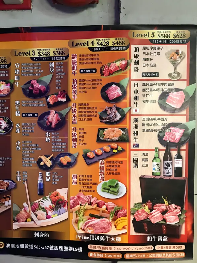 呢間放題餐廳地點係旺角,非常方便,一入到去就有自助吧,好多嘢食可以任夾,令人食慾大增佢有幾個餐選擇,我哋揀咗level 3有得食安格斯牛先點一大碟刺身,份量十足,亦都冇俾漏,都算肥大肉厚點咗安格斯牛嘅唔同部位,牛肉味濃郁,肉質厚實,平均煎30秒左右就食啦,不錯呢餐放題比較欣賞係炸物,明太子雞翼幾好食,有少少辣, 大大隻,皮脆肉滑,encore咗幾次另外就係炸榴槤波波,啲榴槤餡真係好香好滑,外皮都非常鬆脆,忍唔住食咗好多粒值得一讚嘅係佢嘅飲品,真係好多款式,連紅豆冰都有,我就點咗一杯鹹檸七,唔係間間餐廳有得飲…查看更多
