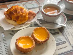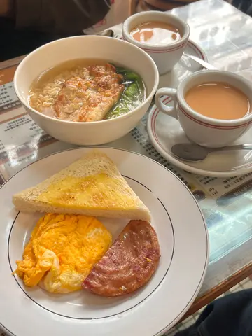 酥皮蛋撻嘅好味程度簡直可以話係港島區嘅No.1,酥皮唔會太厚,夠晒鬆化,蛋漿甜度適中,而且keep住新鮮出爐,超級正!常餐嘅叉燒湯螺絲粉中規中矩,不過跟餐嘅火腿炒蛋厚多士就幾出色,炒蛋炒得好滑,唔錯!蕃茄濃湯通粉嘅湯底偏清淡,但好足料,食得出蔬菜嘅清甜,配埋沙嗲牛柳絲同滑滑嘅炒蛋,完全無違和感,幾正!菠蘿油係冰火+咸甜嘅衝擊,好好味!奶茶茶味偏淡,無回甘,唔係我心目中杯茶!…查看更多