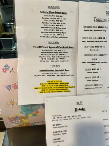 在金鐘處理完一點事,上了一架往北角的電車,在柯布連道落車。那裡也是灣仔站的 A3出口。望到三聯書店,街角有間 Subway,轉入譚臣道,行幾步就到。到達時上午 11:45,有位男職員忙於煎包。店面是兩邊企位設計,有 6張酒吧式高凳。點了一客 6隻招牌生煎包 ($52),2隻黑松露生煎包($33),一客蔥油拌麵 ($32)。等了兩三分鐘就有得食,熱辣辣。(要留意:店舖不收現金。我用了八達通俾錢。)招牌生煎包 ,皮薄,底煎脆,爆多汁。雖然佢枱面有提示,但人總是犯相同的錯。第一隻我一啖咬落去,爆到一枱都係汁。(臨走時我有自己抹番乾淨。)黑松露更香,可以唔蘸醋。蔥油麵,朋友想食,正常發揮。佢分左一半俾我,我加了少少辣醬。朋友覺得好滿足,我本來想再叫一個擔擔麵,但睇錯時間以為好趕,就到此為止。如果路過灣仔,會再幫襯。…查看更多