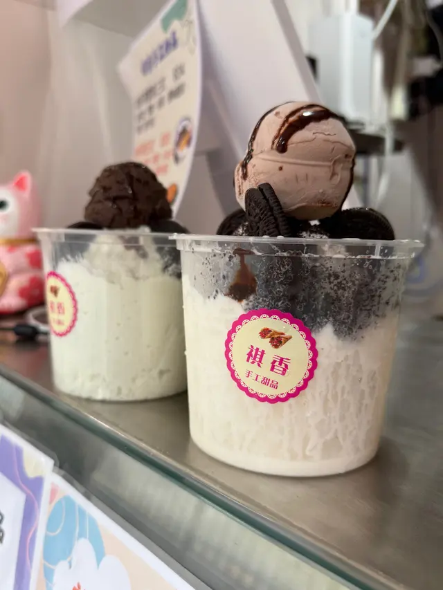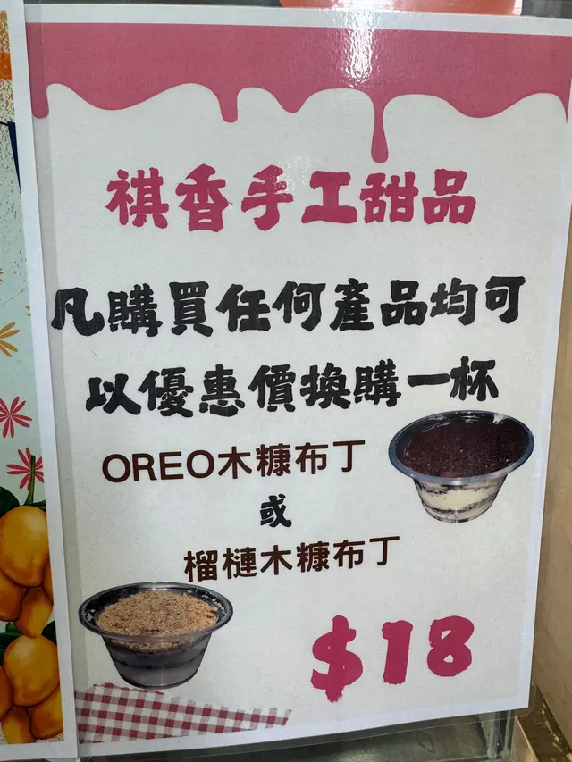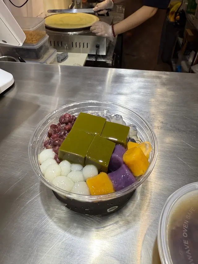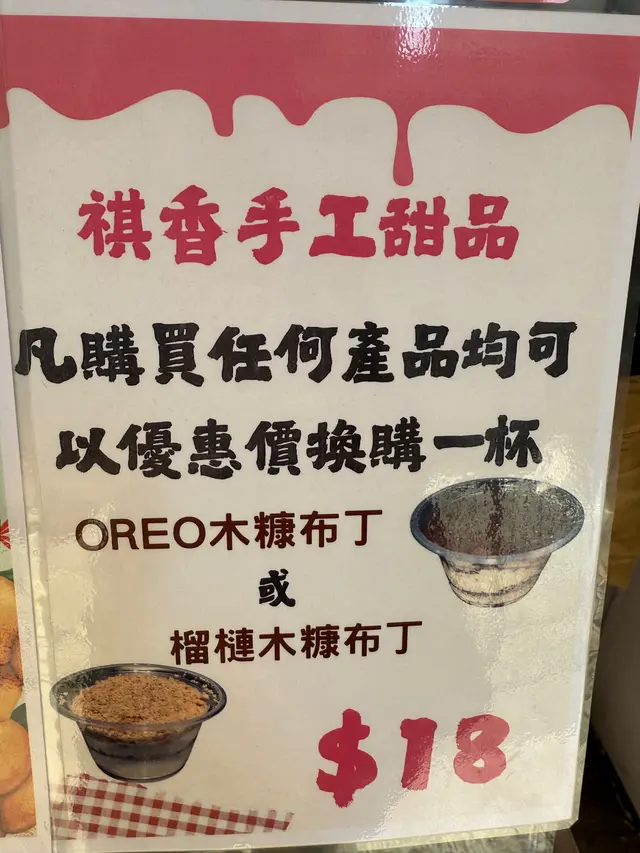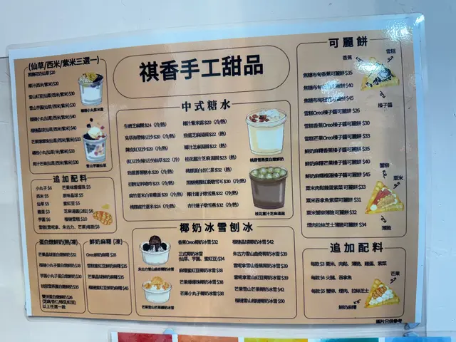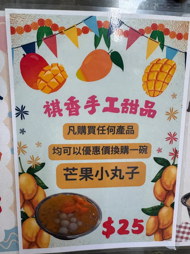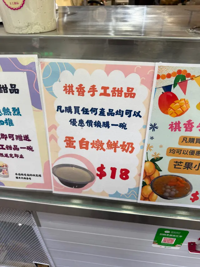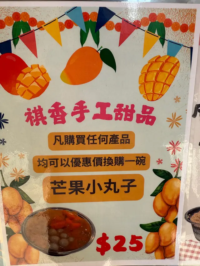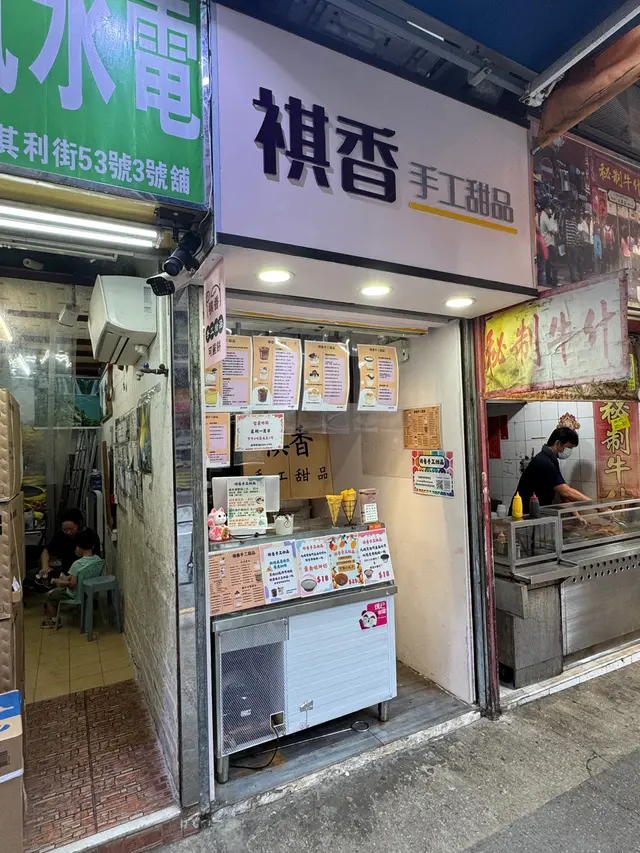 祺香手工甜品位於紅磡懷舊雞蛋仔隔籬,餐牌款式多樣化,有中式甜品、自家製綠茶凍、鮮奶麻糬、蛋白燉鮮奶、即叫即製可麗餅、椰奶冰雪刨冰等等,非常多選擇😍店員姐姐本身推介小妹食招牌純椰奶冰雪刨冰,祺香的冰雪刨冰係用椰奶整並非用水刨再落醬,所以比較易溶,聽來都非常吸引,只不過刨冰要在5分鐘內食完😧因為小妹仲想買返屋企同老公分享,唯有留番下次再嚟先食🤭祺香的可麗餅因為係即叫即整,需時約六至八分鐘,唔想等咁耐,可以提早打電話嚟落單。如果唔介意等待,仲可以在店舖前欣賞店員手工製作,過程都非常療癒🤭🤭!小妹揀咗《鮮奶麻糬芒果榛子醬可麗餅》,小妹就係企喺度欣賞製作過程,食落芒果肉超甜、可麗餅皮薄皮脆邊,仲有新鮮軟熟的手工鮮奶麻糬🤩,再有手打忌廉及榛子醬,食完爭啲食唔落晚飯,因為份量都好十足😂😂除咗美味的可麗餅外,呢度有個好特別嘅甜品吸引咗小妹,就係佢哋嘅自家製綠茶凍啦💚出邊嘅甜品店比較少有,決定買咗比較受歡迎的《綠茶凍五式(椰汁底)》,五式係指綠茶凍、仙草、芋圓、小丸子蜜紅豆、原味晶球,賣相非常靚,食落綠茶凍非常香濃,成碗甜品唔會太甜,連小妹的老爺奶奶都話啱食😏原來而家仲有優惠,只要每買滿$35就會送一碗輕量版甜品,每日唔同!而且買任何甜品,都可以優惠價換購指定甜品一碗,數量不限,小朋友先至做選擇,下次再嚟買要換多幾碗同家人一齊食先得😍😍…查看更多