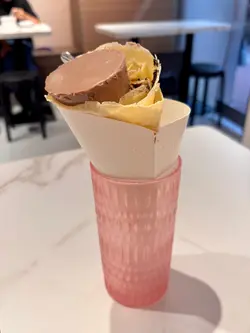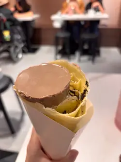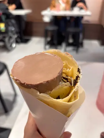 深夜11點竟然見到好多人排隊,梗係要睇下!🤔之前是外賣店,剛搬到新店可以堂食,已經咁多人慕名而來!揀咗:#雲呢拿雪糕香蕉椰奶刨冰 $39用椰奶做,唔係用水做,濃香的甜甜的椰奶味,明顯與平時食到嗰啲有分別!而且賣相好靚!😍#Oreo焦糖布甸可麗餅 $35面層焦糖布甸,中間Oreo加cream,底層再有焦糖布甸,食落才知層層有驚喜,冰火相間口感一流;外層可麗餅又甜靱可口!超好味!😋真係平靚正!而且老闆及店員好親切,招呼好好,難怪咁受歡迎!一定會再去,下次試其他嘢!🤩👍