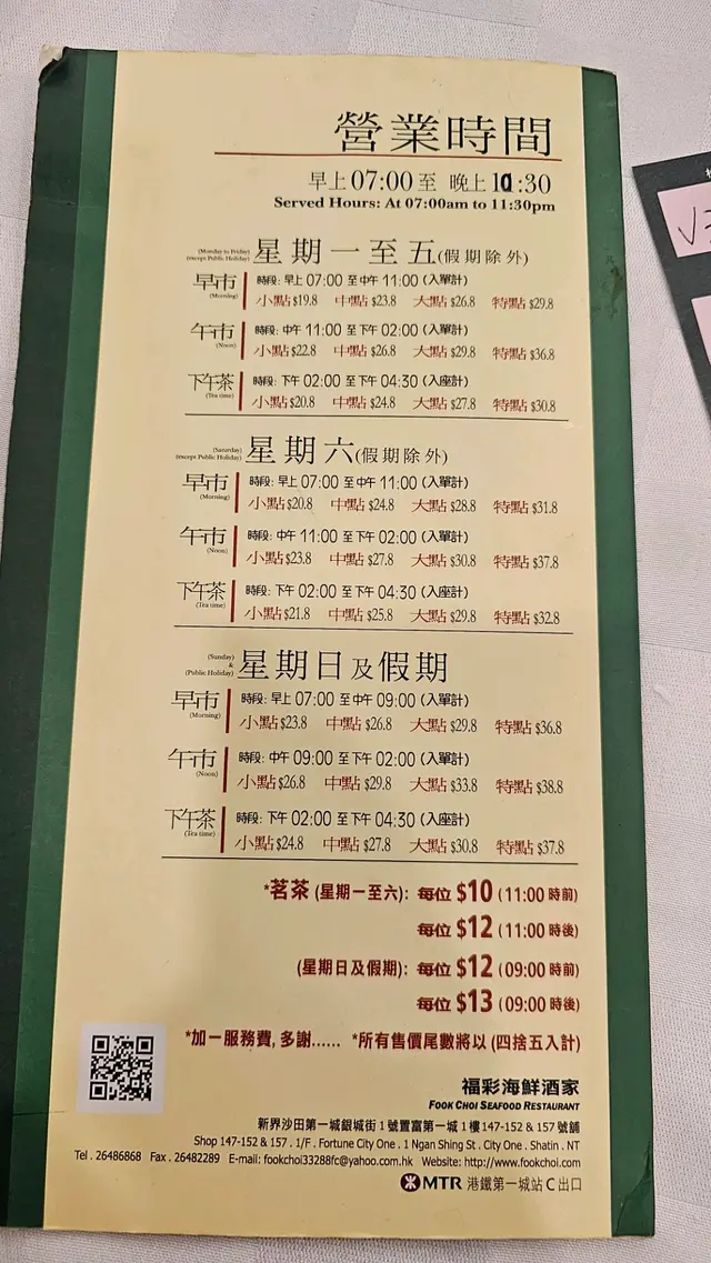 呢間福彩喺第一城起碼超過十幾年 之前就算獨市咗咁耐都可以 Keep 得幾好 但最近附近開咗另一間酒樓 而家好多時都唔使排隊 某日諗住支持吓 晚市去咗幫襯 睇餐牌燒味類海蜇$108 薰蹄$108 無兩樣拼埋嘅價錢就問一問幾錢 諗住都係加十零廿蚊 點知回覆係$168 即係要加$60 諗極都唔明點解要加$60咁多 每樣一半 唔要求加份量 同經理反映 回覆係餐牌有味燒味雙拼係$168 咁樣兩樣叫就係雙拼 咁梗係無叫啦 經理都自覺唔妥返去檢討 最後回覆都要$138 都係果句 做飲食真係要識轉彎 唔係就唯有撞板 諗住支持下點知 . . . 相信嚟緊諗起呢單野都好難叫我再嚟 請我都係咁話 . . . 完…查看更多