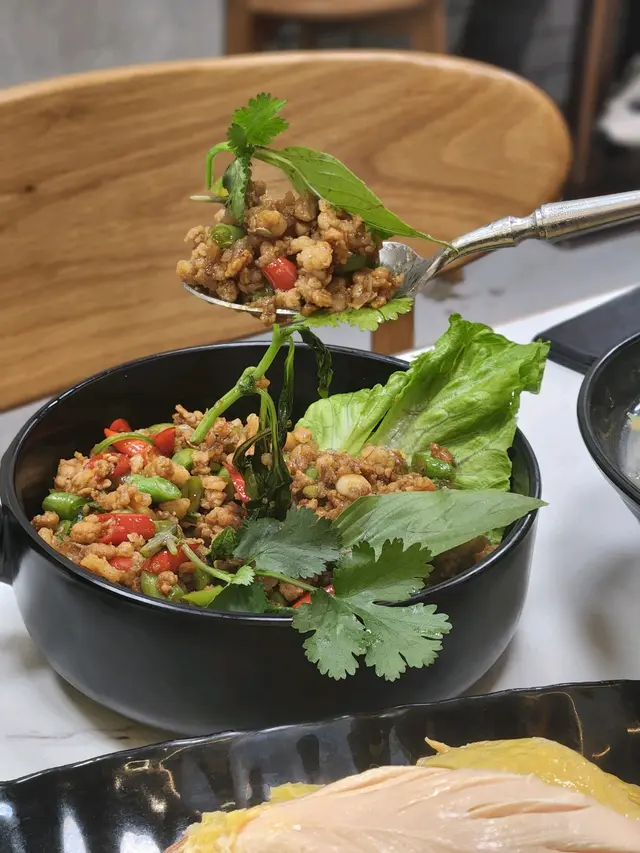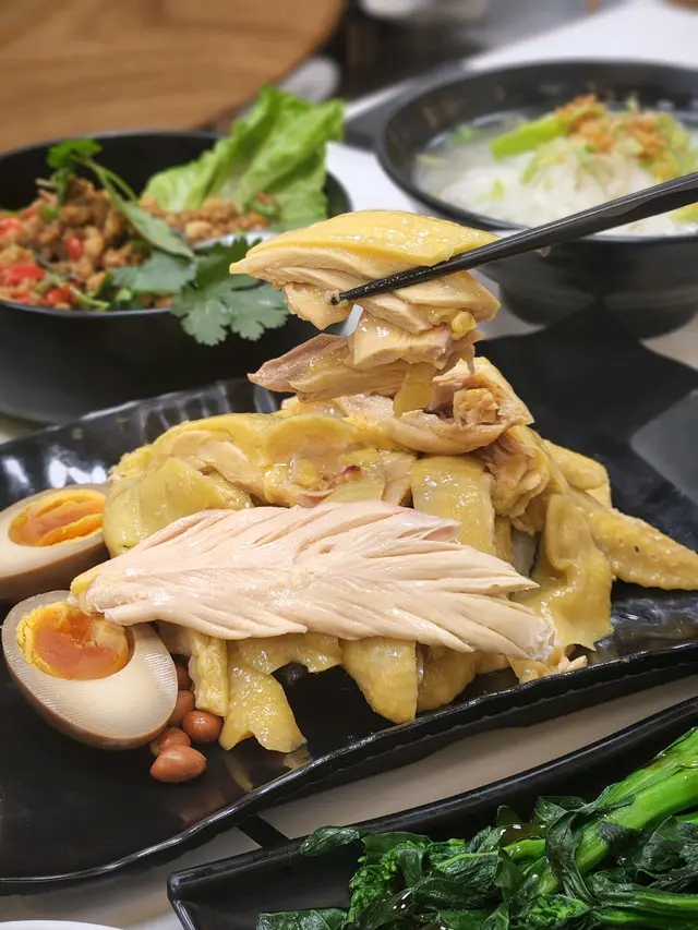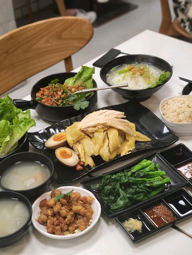 我平時好鍾意食海南雞,亦都鍾意食泰國菜,咁啱畀我發現咗屋企附近竟然開咗間泰式海南雞店!巧開心!仲坐得幾舒服添。睇openrice食評比較多人叫二人套餐,所以我都揀咗呢個餐,真心豐富,擺到成枱都係! 有半隻雞、一款小菜、一款小食、兩個例湯、 一款油菜!HK$200有找,冇加一服務費。 我另外以優惠價加配咗飲品,之後發現佢哋免費提供嘅茶勁好飲,係蜜桃烏龍! 隔離枱問店員有冇得散茶葉😂 海南雞都算幾大隻,兩個人絕對夠食, 仲有埋一隻 鹵水糖心蛋。另外小菜叫咗佢哋推介嘅生菜包金不換辣肉碎,主食可以揀白飯、油飯或者河粉。小食揀咗炸雞軟骨,好脆口~查看更多