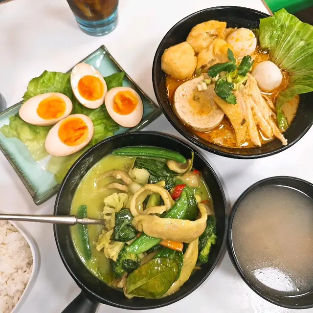 星期五收工,搵咗間公司附近嘅茶餐廳食晚餐,最近想食海南雞,於是就入左呢間試下,叫左2個一人套餐,比想像中大份🤣總體覺得似去咗泰國餐廳一人套餐福星海南雞配雞油飯+綠油灼時菜+ 泰式酸辣骨鳳爪(半價)+凍檸茶 $98海南雞肉質很嫩滑,雞胸肉幾乎唔柴。配上三色醬汁。油飯蔥味好突出,米飯粒粒分明,十分香口。泰式酸辣骨鳳爪,甜甜酸酸好開胃。一人套餐喇沙湯+綠油灼時菜油麵+蒜香雞軟骨(半價)+凍檸茶 $99喇沙面裏面有雞絲、扎肉、魚蛋,湯底有濃濃嘅椰奶香同喇沙獨有嘅風味。豆卜索晒啲湯汁十分惹味,油面偏硬身。蒜香雞軟骨味道偏淡。查看更多
