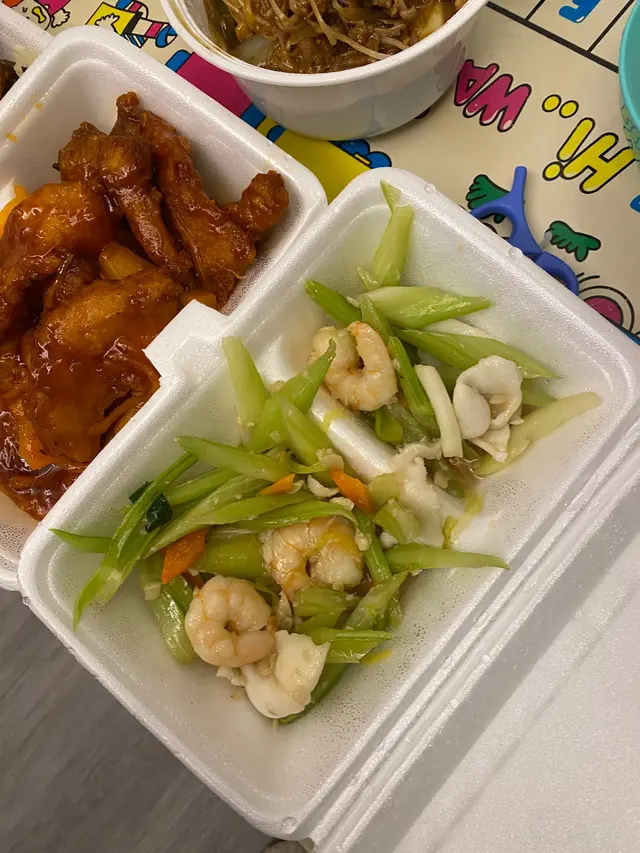 星期六晚嗌左4個小菜,個姐姐話唔熟電腦系統落單,落個菜名都搵成分鐘,問佢係咪小菜有跟飯?無就另外叫,佢好好人咁施捨左4個飯俾我,因為佢話:咁俾4個飯你囉⋯⋯姐係咁,無嘅話我另外叫都ok但唔會係咁講野掛?收到外賣一打開真係想講粗口!西芹炒花芝枝片蝦仁,少得可憐😅得3舊蝦仁+4片花枝片,西芹咁平亦都少得可憐,再打返電話問,佢問我係咪$110個個?(呢個時候我真係打左個突,因為我無諗過$110,因為原本唔係想叫呢個餸,而係姐姐話無我想要個款先轉呢個⋯⋯)酒樓價但無酒樓量!
