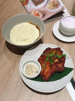 馬鞍山近年開始擺脫「美食沙漠」之名,越來越多食肆進駐而且質素還是很不錯,最近又有一間新餐廳來到馬鞍山開業!這次是主打日西料理的餐廳,8月開店不久已經成為人龍店啦 吉列豬鞍•白咖喱烏冬 $158炙燒三重極上丼 $248開心果拿鐵 $50(單點) $38(跟餐加配價)紫薯拿鐵 $48(單點) $36(跟餐加配價)香甜粟米刨冰 $128來店必點招牌白咖喱烏冬啦~ 而吉列豬鞍就是最具人氣的配料,果然沒有令人失望!吉列豬鞍原件送上,厚厚的超大塊又炸得金黃,外邊酥脆內頭仍保持嫩滑不會柴還有肉汁啊很好吃!至於咖喱烏冬表面覆蓋一層雪白的、由馬鈴薯泥跟新鮮奶油的冷打發混合而成的薯泥忌廉,拌勻吃的話香濃辛辣的咖喱烏冬味道會變得溫和,滿有奶香之餘口感也是非常順滑,加上烏冬煙韌掛汁力十足,果然是招牌菜!新店推出兩款的限定壽司爆丼,點來一款有齊牛板腱、蟹肉跟三文魚籽的炙燒三重極上丼,單看食材就覺得好吸引,牛板腱用炙燒方式處理,嫩紅色入口有韌勁;加上蟹肉的鮮和三文魚籽的鹹香就構成口感相當豐富的丼飯~飲品方面只要點任何餐點也可以加配啊!選了兩款非咖啡類飲品:開心果拿鐵跟紫薯拿鐵,前者開心果味超濃郁,即使是冷飲有冰塊卻沒有因此減淡開心果的香氣,開心果控應該會很喜歡~ 至於紫薯拿鐵就選來熱的,紫薯味會更突出奶香味更濃郁,香甜順滑!吃過正餐當然要吃店家的甜品啦!這裡的甜點都是很受歡迎,炎夏時份來吃最新推出的粟米刨冰就最爽不過~ 刨冰足夠2-3位食用,粟米刨冰放上海鹽芝士奶蓋和燒粟米,再倒入粟米汁,刨冰內更有粟米粒,味道完全是天然的粟米清甜味,加上刨冰的冰涼口感,消暑一流!店家繼沙田一號店後再在新界東開新店,店面面積比一號店大幾倍,裝潢以枯山水為題,簡約自然加上木系元素,再配搭柔和燈光及綠色植物點綴,加上餐廳的空間感十足,座位非常寬闊,營造出寧靜舒適,可讓人靜靜享受美食的用餐環境~ 食物種類很多都是以日西料理為主,而二號店更會有早餐時間供應多款早餐,所以住在附近的朋友又多一個選擇啦!…查看更多