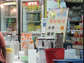 路過此店 見有椰汁賣 心郁郁買杯飲下 降下溫
