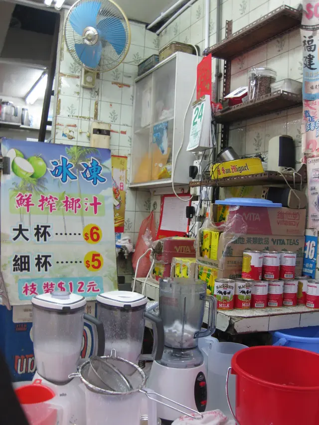 以前還是住在土瓜灣時爸爸時常會帶我來這裡買杯椰汁雖然環境較簡樸,但我們可為了一杯椰汁而專登走過來~(我家跟譚公道有成10分鐘步程的)椰子批好,切好,放在筲箕裡,一籃籃備用,每接一個ORDER,叔叔就係籃裡'不'了一碗放入攪拌機,加少少水,多多冰,攪了兩三下,再落花奶,再攪兩三下,"格格榨"就搞掂~飲落去,只可以講三個字:【香.滑.濃】可惜今天再去已經不是那回事,哥哥仔把一早搾定的椰子汁從器皿中倒進紙杯裡便算了~