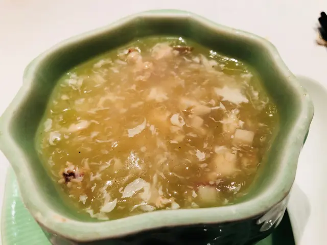 showed up at 7pm to an empty dining room,  took the Mastercard discount menu, some good dishes: best one was the crab meat with poached cabbage - delicious!  the double boiled chicken soup also very good.  starters not memorable, the crab claw steamed in hua tiao wine was good,  the chicken was tender but bland in taste, fried vegetable shark fin with egg and beansprouts was fine, fried rice a bit too greasy.  dessert was good.   with one beer each, the meal came to $750 per person, not cheap!   would not have come if there were no Mastercard discount - now i understand why 查看更多