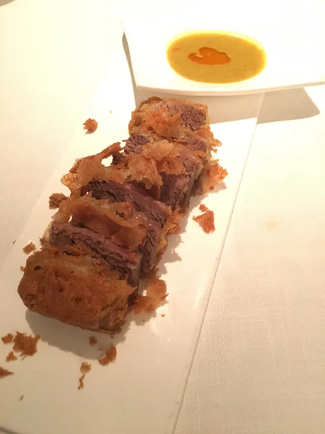 Signature Set 華麗堂皇的一餐 禮賓府給人感覺就是高尚,要特別時節才可到的地方。最近聽說前禮賓府的師傳開的餐廳,當然想攜帶家人一嘗珍饈百味餸菜。環境:華麗吊燈,牆上掛滿「歷史時期」的畫,活像帶你細味「從前」花鵰蒸蟹鉗鵝肝蝦多士師傅精選燉湯(羊肚菌螺頭湯)桂花鮑魚炒素翅酥炸安格斯牛腩配咖哩汁千層豆腐浸時蔬禮賓傅炒飯(龍蝦肉、帶子肉、鮑魚粒、黑松露)是日甜品(牛奶合桃糊)餐廳以套餐供應。用料上剩配合師傅手勢令我們齒頰留香!份量也足夠滿足了兩人而味道亦偏向清談。 即使是油炸的安格斯牛肉 及 鵝肝蝦多士也只是被薄薄的一層粉包圍著,吃一口後肉仍是談談的紅色,沒有過熟,外脆內軟,肉與肉之間也容易分開。而咖哩味道是有,可是一點辛辣都沒有,適合大小朋友們。花鵰蒸雞吃得多了,是次菜單是花鵰蒸蟹鉗。蟹肉輕輕沾上花鵰便可以把肉質的鮮味在口腔內爆發出來。禮賓傅炒飯是包含色香味俱全! 驟眼看似很濃味但是放進口內卻完全沒有。軟棉棉的飯,加上撲鼻的黑松露,很匹配! 牛奶合桃糊真的很滑很滑而且是水汪汪不像芝麻糊搬,而且並沒有過甜。羊肚菌螺頭湯,這個既乾燥又反常的天氣滋潤湯少不了,師傅製作了數小時。湯既清甜加上羊肚菌可補身,實在想多安排兩碗! 千層豆腐浸時蔬吃了這麼多餸菜也想平衡口內的味蕾再品嚐,而這道菜加上杞子的千層豆腐及蔬菜,既美觀又健康。桂花鮑魚炒素翅鮑魚跟素翅沒太突出的味道所以師傅加上桂花提高了其香味並且加上銀箔,看似滿地又金又銀!查看更多