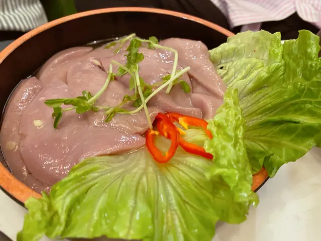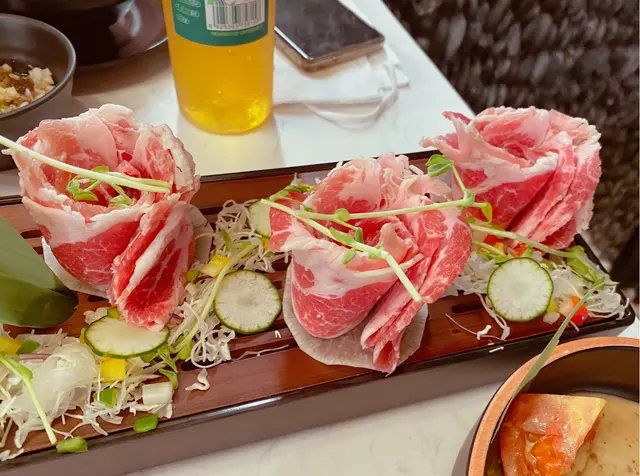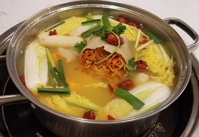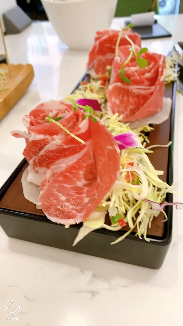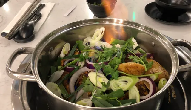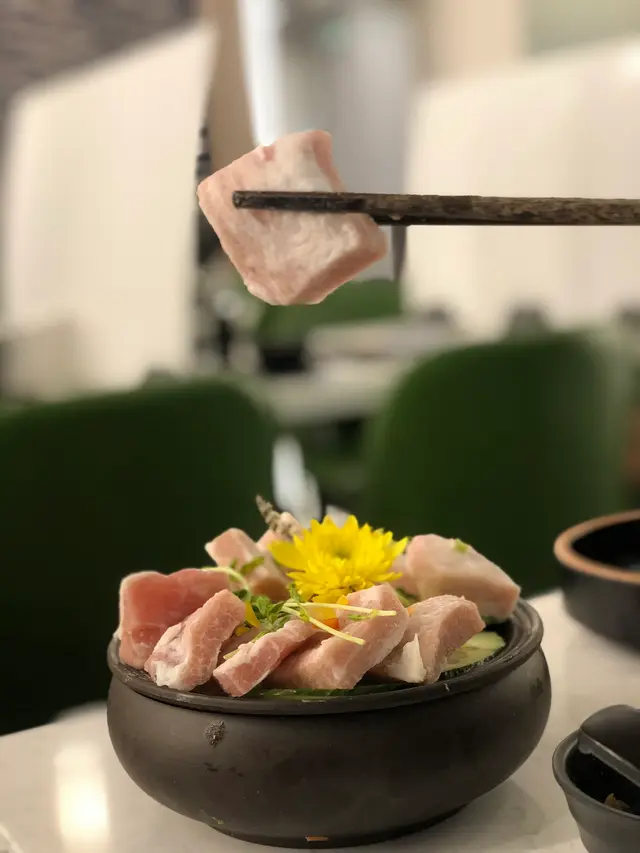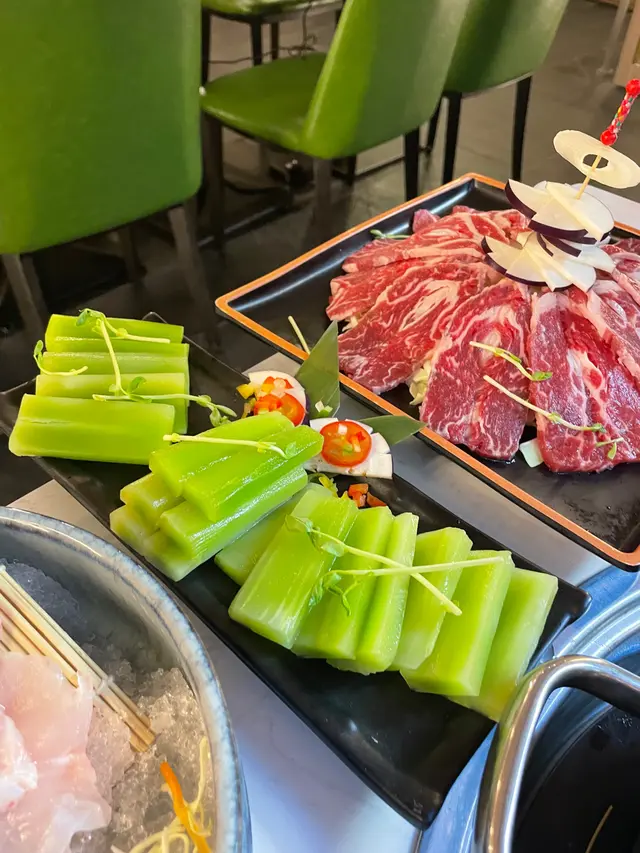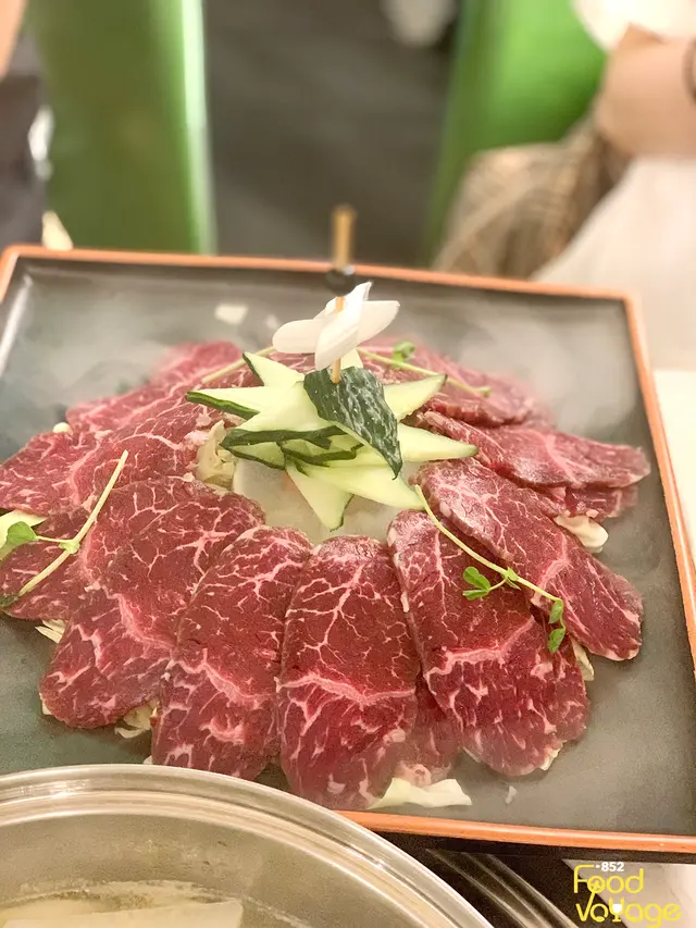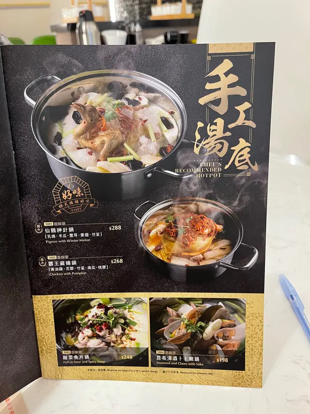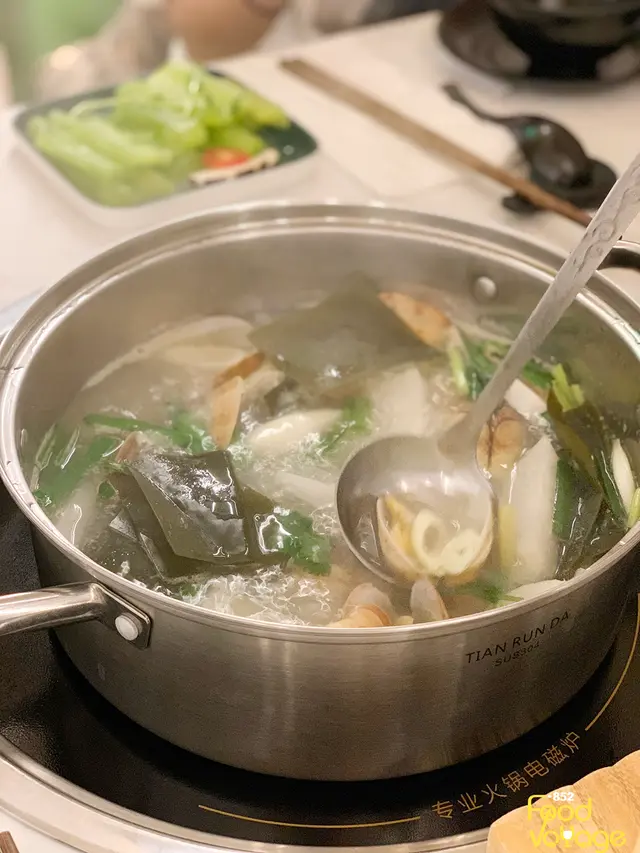 天氣轉涼自然要光顧火鍋暖暖身子,因而今天便與朋友到銅鑼灣的禾庭品嚐品嚐。餐廳裝潢大致使用淺系色調為主,再配上鮮艷奪目的綠椅子、白燈、竹子等作為配襯,令整體設計感覺富有日式風味。火焰鮮鮑花甲大盆雞煲雞煲點選了半隻份量,其主要食材用上了雞隻、花甲、鮑魚。職員端上桌後便會先加入中式白酒並再點火炒製,食用時配料均酒香濃郁,惹味帶辣,而雞肉口感很是嫩滑入味,花甲則煙韌彈牙,最後鮑魚是鮮味韌脆。紅油大腸大腸用上辣椒油醃製後再煮熟食用,因而入口有著麻辣鮮香的味道,並同時夾雜着大腸的獨特氣味,咀嚼口感爽滑彈牙,煙韌鮮美。手打墨魚丸手打的功夫菜是餐廳的主打菜式,食用時便可嚐出墨魚丸是用料十足,其口感煙韌爽脆,富有彈性。手打鮮蝦丸鮮蝦丸同樣是自家製手打出品,咀嚼時口感滑嫩鮮香,爽口脆彈,並有著濃郁的蝦香鮮味。火紅火綠安格斯牛肉丸牛肉丸是選用安格斯牛肉手打製作的,而名為火紅火綠原因是其頂部加有辣椒,而底部則放有青椒,因此命名。由於牛丸用料新鮮沒有使用任何添加劑,所以口感易於咀嚼,味道牛香濃郁,麻辣微彈。手切頂級封門柳封門柳份量選擇了大份,上桌時可見菜式中間部份放置了乾冰作裝飾,並有散發出輕微煙霧,非常適合用作打卡拍照。其特色是脂肪不多,並且每隻牛只有一條,所以較為罕有,食用時肉香味濃,滑溜鮮甜。油麥菜油麥菜又名為苦菜,其外觀色澤碧綠,可見甚為新鮮,咀嚼時爽脆鮮嫩,味道細膩清香。金菇菜健康價值高的金菇菜是款有著降低膽固醇等多種好處的菇類,其口感爽滑脆嫩,擁有清新菇香,很是鮮美。茶裏王無糖烏龍茶選用台灣南投縣鹿谷鄉的青心烏龍製作而成,飲用入喉味濃韻足,回甘如初,甚是解膩。茶裏王無糖綠茶用料使用上早春綠茶,並運用日式煎茶工藝製作,再添加入少許抹茶而成,味道醇厚微甜,富有茶香。總的來說,餐廳環境清雅簡約,整潔舒適,而食材精緻新鮮,手工製菜餚亦用心足料,是所高質的特色火鍋店。…查看更多