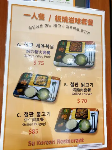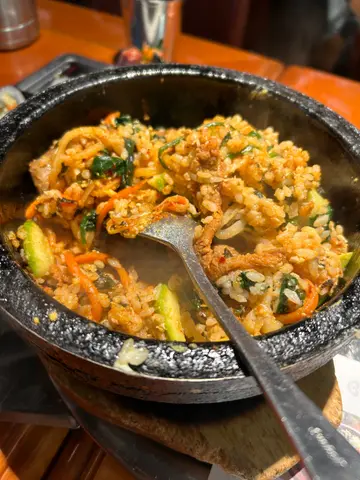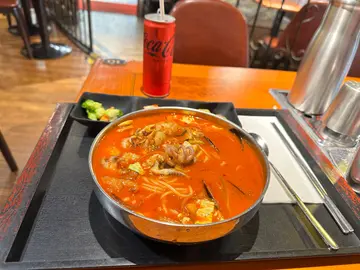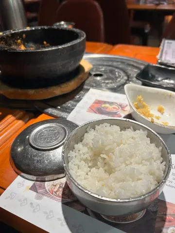 今晚老公挑起條筋,突然話收工不如去食韓國嘢🤔比雷劈嚟呀你🤔既然佢咁有想法,聽佢一次啦上網搵到呢間韓國餐廳,諗住平平地快食就算,去到門口發現原來百物騰貴😂menu價格不似預期,既然都嚟到冇理由唔食侍應全部都係韓國人,簡單英語溝通可以,都好有禮貌禮拜日夜晚成間餐廳連埋我地都係得3枱客人😳,老老實實坐低左之後我都驚伏有套餐,不過菜品唔太啱口味,所以都係決定單叫。叫咗個牛湯,雜錦豬肉石頭拌飯同埋紫菜卷。落咗單之後,店員就送上咗前菜,係雞蛋紫菜卷,薯仔,泡菜,同埋魚糕。味道正常發揮,泡菜偏酸啱我口味😋由於太肚餓,大部分都相機食後。牛湯上菜嘅時候成個煲都係滾嘅,正😻材料簡單,入面有牛肉,長壽麵,同埋蔥,湯好香牛肉甜味,雖然同韓國嘅雪濃湯係兩回事,但都熱辣辣好好飲問侍應攞咗啲蒜蓉加落去湯嗰度,即刻昇華曬🤩不過好白痴咁飲完晒成個湯食曬啲麵先發現原來枱邊放咗一碗飯😂唔怪之得硬係覺得爭咗啲嘢,作為一個飯桶為咗唔浪費決定淨食白飯石頭鍋飯符合期望,個石鍋好熱,就算即刻落手撈左啲飯,個底都已經出現咗啲燶咗嘅飯焦,好足料,豬肉唔會鞋,美中不足係飯偏腍紫菜飯卷大大舊,入面多咗酸瓜,又好夾wor!口感更加好雖然淨係叫咗三樣嘢,但兩個人都差少少食唔晒。埋單$3xx都可接受,有種舊式韓國家庭料理既味道(加上裝修都比較舊🤪今晚咁凍,食完真係有一下置身韓國既feel🤣對比於對面韓國街既餐廳嚟講,性價比算高👍🏻…查看更多