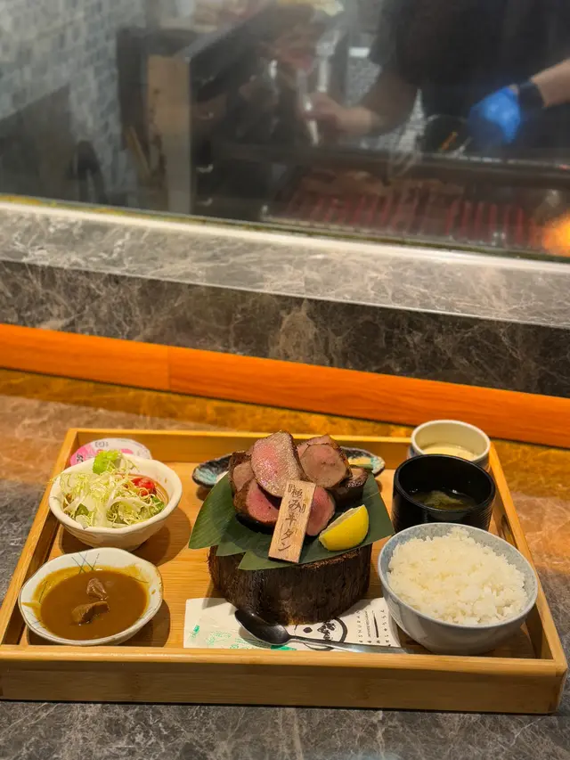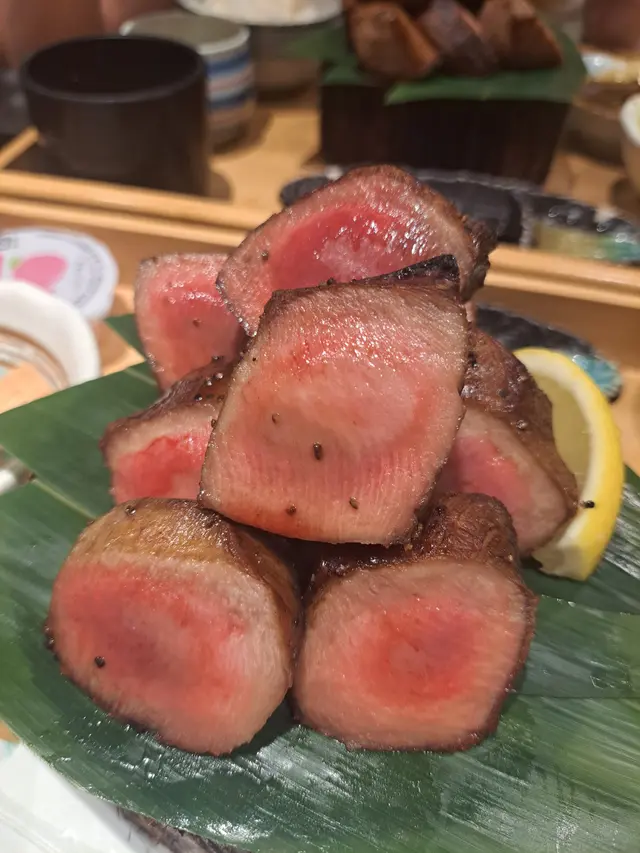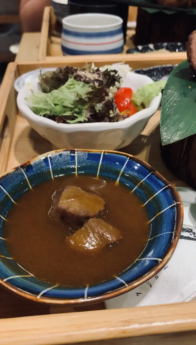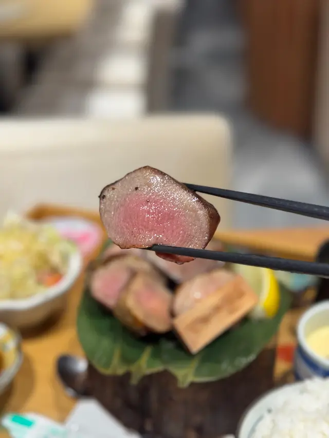 Often seeing ppl recommending their ox tongue on social media, my friend and I deliberately visited this Japanese resto in Quarry Bay. .We both ordered the Thick Cut Beef Tongue Set, which included Salad, Miso Soup, Japanese Steamed Egg Custard, Rice, Grilled Beef Tongue, Beef Tongue with Curry and Dessert. The Japanese Steamed Egg Custard was very smooth with a strong egg aroma. It was a bit lukewarm, but the taste was nice. The Grilled Beef Tongue was truly extremely thick and came with a generous amount, at least 8 pieces! With an appealing pink centre, the tongue had slightly burnt crust and a succulent, tender interior. Apart from lemon juice, I could also choose to dip it in pink rock salt, teriyaki sauce, or scallion oil to enhance its savoury. Pairing the beef tongue with the round and fulfilling Japanese Pearl Rice made the whole dish appetising. The Dessert of the day was Peach Jelly, which was quite refreshing and helped decrease some of the greasiness of the meal..The resto is very popular, and we had to wait for while to be seated even though we actually booked in advance. It is quite crowded, and almost everyone ordered their signature beef tongue🤣.…查看更多