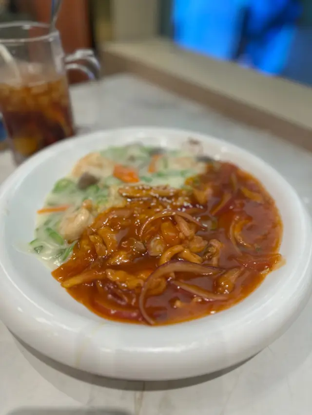 今日去咗觀塘秋田冰室食晏,真係比預期中驚喜!叫咗個鴛鴦炒飯,一上枱就嚇親——大碗到呢!白汁同茄汁雙拼,撈飯一流,仲要落足料樣樣齊,最正係啲蝦仁大隻又爽口,完全唔係普通茶記嗰啲雪藏蝦仔,抵讚! 另外試咗個芝士炒蛋魚柳包配薯角,個魚柳真係厚切到呢~外皮炸到金黃脆卜卜,咬落去"咔嚓"聲,魚肉又嫩滑,夾埋半溶芝士同滑蛋,邪惡到爆!不過認真熱氣,食完真係覺得喉嚨有啲痕,但為咗咁好味,生痱滋都抵啦!薯角炸得香脆。唯一要彈嘅係地方有啲逼,枱同枱之間好窄,坐得唔算舒服。但以咁嘅份量同質素,$40-$50就食到咁豐富嘅下午茶,真係冇得輸! 查看更多