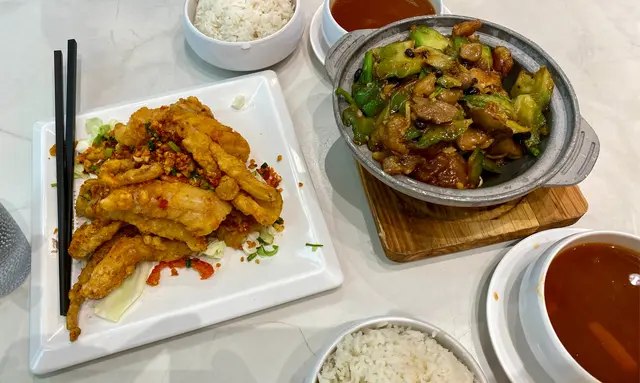 很旺場的店舖位置,六點到場都要排隊等位,不過是新店就試一試吧!新裝修,光線充足,溫度合適,就是枱與枱之間距離很近,給人一種很逼夾的感覺。餐具補充貌似不足,成張枱得兩隻匙羹在櫃桶,而且放得很雜亂,要自己找找。服務上除了安排你到位置同叫你掃QR code外,要水的話要自己斟,斟水機常常會見到有人排隊。椒鹽鮮魷就是椒鹽和鮮魷分離得有些嚴重,粉漿鬆散,椒鹽也不在粉漿上,看上去很好看,吃的話你會感覺什麼叫做食物中了分離咒。涼瓜魚柳煲的魚柳黐煲有些嚴重,但勝在個煲夠熱,還可以接受。白飯用的米質素很差,會見到不少黑點。羅宋湯只有酸,而且很酸,湯料配菜極少,整體中下水準。查看更多