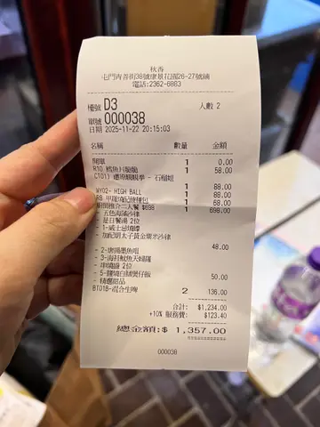 呢日同friend去左屯門呢間居酒屋食dinner,我地點左廚師推介二人餐,估唔到好有驚喜!前菜五色海藻沙律,好開胃,啲海藻又爽口彈牙,食完即刻醒胃,為之後嘅大餐做好準備。之後主角出場啦,威士忌燒蠔一上枱就聞到陣淡淡嘅酒香,真係好犯規!啲蠔燒到啱啱好,唔會過熟,咬落去好juicy,有蠔嘅鮮味,再加埋威士忌嘅醇香,直情係雙重享受!小食點咗個唐揚墨魚咀,呢個不得了!炸到外脆內彈牙,個墨魚咀好有咬口,點埋沙律醬,又香又惹味,一啖一啖停唔到口,送酒一流!脆辣單骨雞翼,方便食又好味,岩哂我呢個懶人。外皮炸到脆卜卜,咬落去有卡滋聲,入面仲鎖住啲肉汁,微辣好過癮,食到舔舔脷。仲有串燒盛,一次過試晒唔同款式。樣樣都燒得恰到好處,有牛肋骨、日本黑豚肉、菠蘿、京蔥煙肉卷、魷魚串,個人最鍾意佢個燒菠蘿,甜甜地又解膩,滿足晒唔同口味嘅朋友。壓軸出場就係個鹽燒白鱔煲仔飯!一嚟到熱辣辣,飯焦香到震!白鱔燒得金黃,魚肉肥美又滑溜,加埋豉油撈飯,真係無得輸!食到連煲底嘅飯焦都刮埋晒,滿足到爆。最後必點呢度好特別既cocktail ,分別點左一日冚包散 - 華夫人同含笑半步釘 - 唐伯虎,個名好盞鬼,亦都超好飲。…查看更多