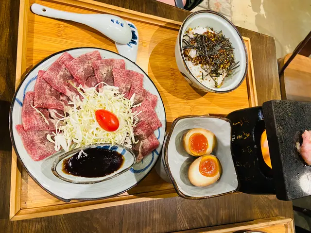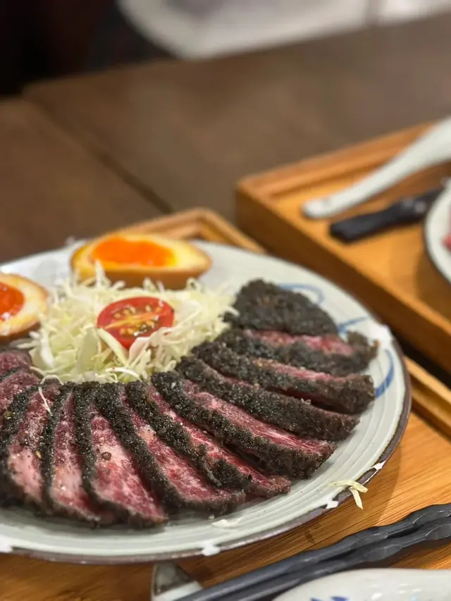 吉列牛有驚喜,質素不錯 ngyuenwa922等級42024-03-212K 瀏覽 關注 中午同同事食午餐,1:00pm一去到就有位,店舖座位雖然較小,但每座位都較闊落。裝潢是日式風格,主打日式料理和燒肉,有平價午市套餐,亦有多款燒安格斯牛的不同部位選擇,一行仨人都喜歡食燒牛,所以各自揀咗三款牛嘅不同部位,開心share。每個燒牛再加咗$22套餐,配白飯+飯素,流心蛋,汽水。燒黑松露《吉列牛》💲158超驚喜👍🏽👍🏽個人認為必食之一。第一眼見到仲同同事討論外觀唔靚,黑蚊蚊。一食之下,完全改觀,燒完後,肉嫩,重牛味,外皮的吉列香脆,與牛超配搭👍🏽板燒安格斯牛小排💲$148都好好食,質素唔錯👍🏽黑安格斯牛舌芯💲108正常發揮…查看更多+ 4以上食評乃用戶個人意見 , 並不代表OpenRice之觀點。讚好分享吉列牛有驚喜,質素不錯 秘 (謝斐道) https://s.openrice.com/QrbT0LDPH00檢舉 張貼 評分5味道5環境3服務5衛生5抵食推介美食吉列牛$150牛小排$148黑松露吉列牛板燒牛小排用餐途徑堂食人均消費$150