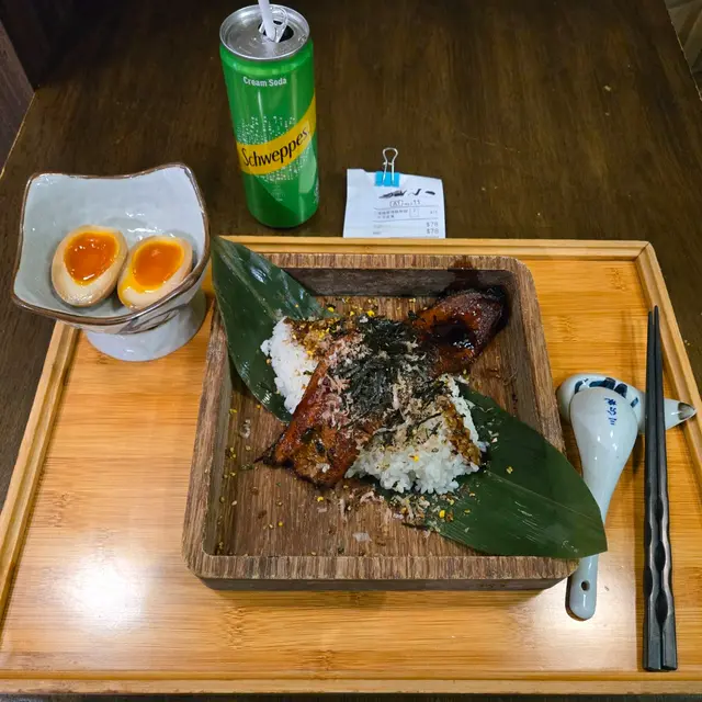 **蒲燒鰻魚飯食評** 1 EvangelineL01等級22025-03-261K 瀏覽 關注 今次試咗呢間店嘅「蒲燒原條鰻魚飯配溏心蛋」,整體來講幾滿意!鰻魚燒得啱啱好,外皮微脆,肉質軟嫩,蒲燒醬汁香甜濃郁,同鰻魚好夾,撈飯一流。米飯軟硬適中,粒粒分明,吸收晒醬汁嘅精華。溏心蛋亦係亮點,蛋黃流心,滷得入味,為成個飯加分。 不過,環境方面就稍為遜色,舖頭外觀裝修幾有風格,但裏面比較簡陋,座位同擺設都偏普通。另外,背景音樂聲量太大,傾計有啲吃力,如果調細聲啲會更舒服。 總括而言,食物質素值得一試,尤其係鰻魚同溏心蛋,但環境同音量就有改善空間。如果純為美食而來,依然推薦!…查看更多+ 1以上食評乃用戶個人意見 , 並不代表OpenRice之觀點。讚好分享**蒲燒鰻魚飯食評** 1 秘 (謝斐道) https://s.openrice.com/QrbT0wXfR00檢舉 張貼 評分5味道4環境5服務4衛生5抵食用餐途徑堂食