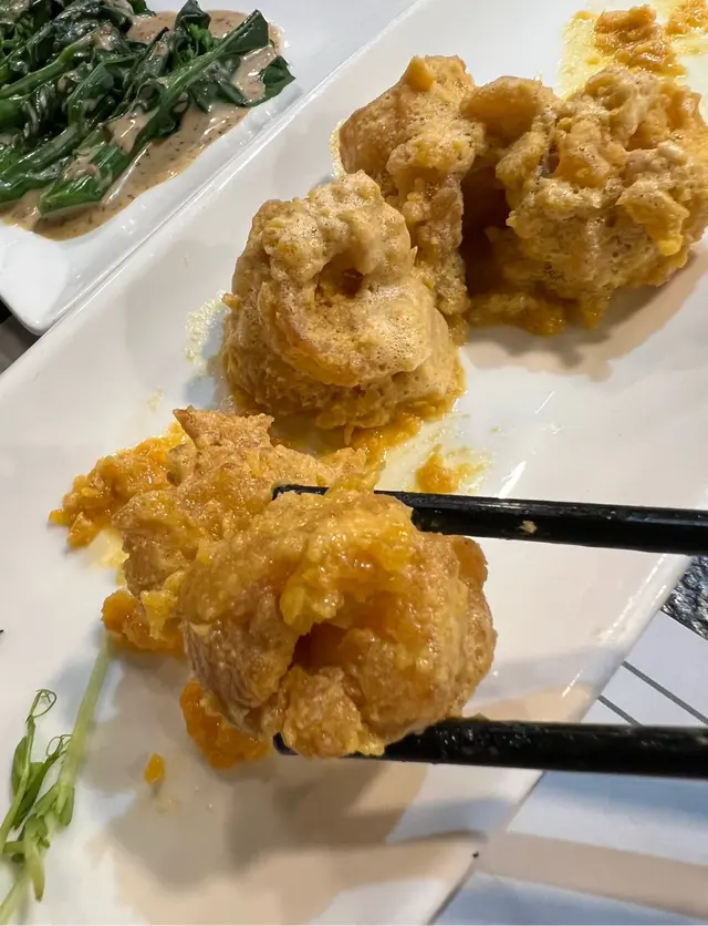 已經嚟食過幾次,每次都係因為為咗佢個炸子雞而嚟,然後再試其他唔同嘅餸菜🐔炸子雞嚟之前最好打嚟留定,上台係熱辣辣出氣,個皮每次都燒到脆卜卜,然後雞皮係勁薄,咬落去好似薯片咁脆,啲雞肉又keep 到勁嫩滑,勁多肉汁好juicy, 能夠炸到外乾內濕,雞油嘅香味每啖都勁豐富🦐黃金蝦球呢間啲炸野的確係好食,個蝦球係超大粒好厚肉,牛油咸蛋黃嘅外皮整得好好食,蛋嘅咸香味濃郁,每一隻都碌得好均勻,同樣做到好酥脆嘅外層,蝦肉都keep 住彈牙濕潤🥬冰鎮芥蘭一心以為會係啲酸酸地嘅冰鎮涼伴,原來係日式芝麻醬,不過其實都好食,啲芥蘭好嫩冇筋又夠凍,係冇酸醋涼拌咁清爽🐟酥炸馬友因為真心欣賞呢到嘅炸野,所以叫左條女都想試吓炸起,真係冇揀錯,條魚炸到金黃色,但都能夠鎖住啲魚汁,外乾脆,馬友肉質幼嫩,啲幼骨都可以脆到食埋唔覺🍖咕嚕肉呢個啲排骨就比較瘦,同埋個汁係偏甜咗少少,適合小朋友食查看更多
