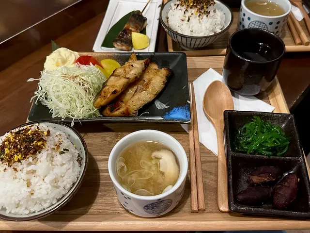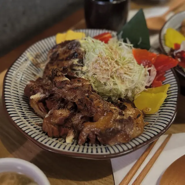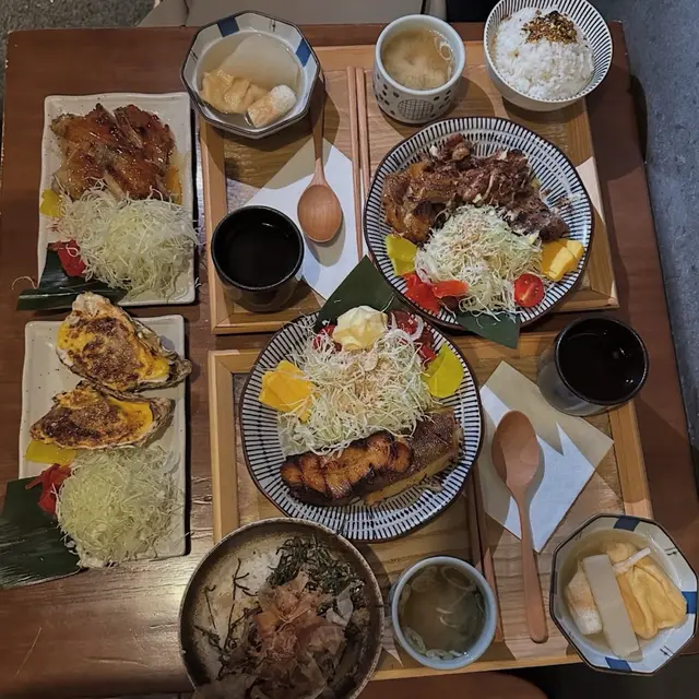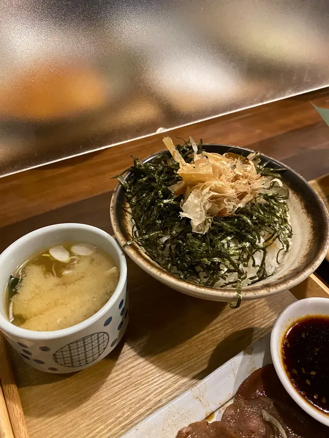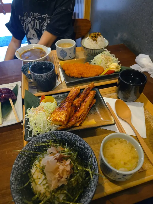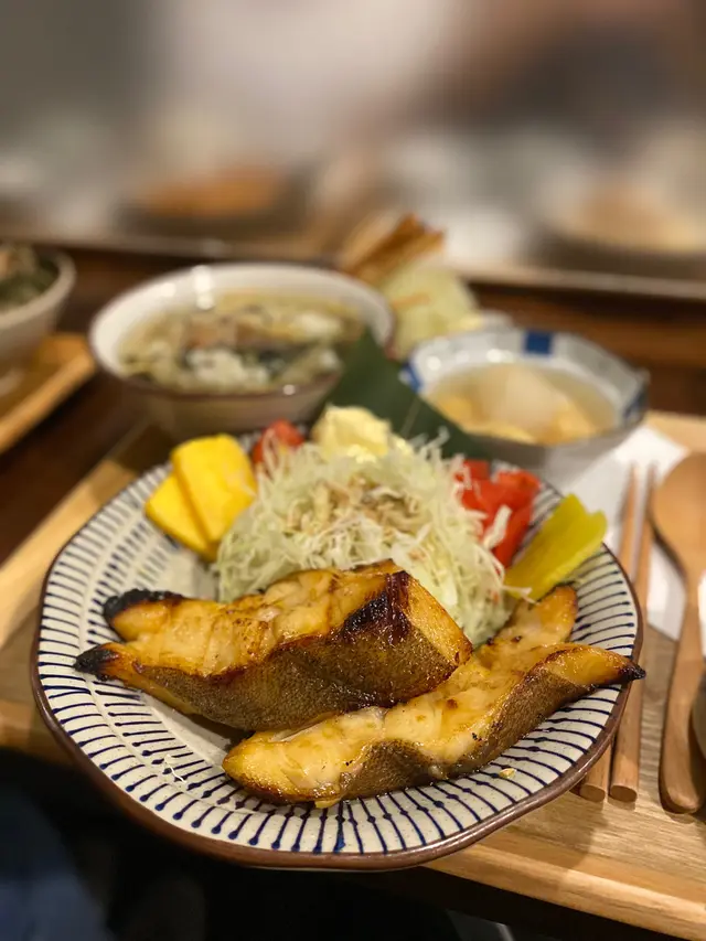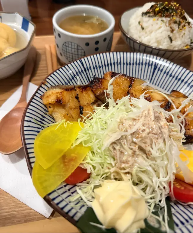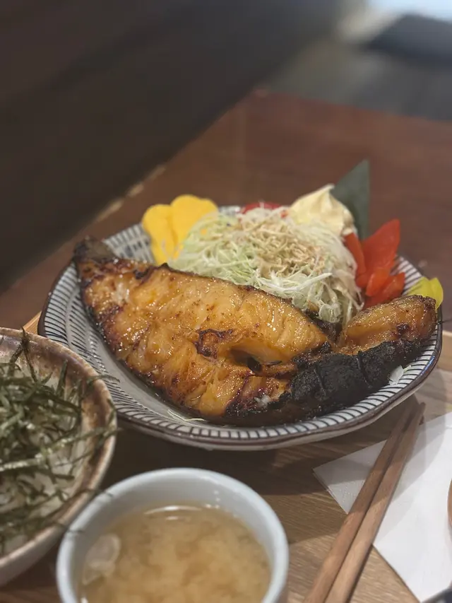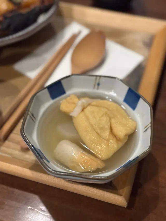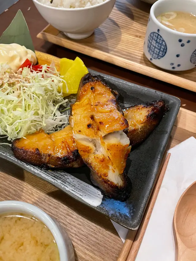 我算是這店的常客,偶爾便會前來用餐。以往多數在午餐時段光顧,這次晚市過來,發現菜式更為豐富,難怪晚上都需要排隊等位。汁煮豬軟骨 $84 (定食+$30)午餐時我常選擇香脆內嫩的吉列豬扒。這次避開炸物,改點了汁煮豬軟骨。醬汁濃郁,豬肉入味且軟嫩,軟骨則軟中帶韌,口感層次分明。醬汁與白飯相配,因此加$30升級為定食。定食除了有珍珠米飯,還有前菜、味噌湯及煎茶。前菜類似關東煮,有白蘿蔔、竹輪及年糕福袋,湯頭清甜。味噌湯用料豐富,除昆布與豆腐外,還加入蜆肉與冬菇。西京燒比目魚定食 $94 (定食+$30,另轉貓飯+$10)貓飯是店內招牌之一,以白飯拌入木魚碎、紫菜與牛油,香氣撲鼻,令人滿足。比目魚魚皮香脆,搭配蛋黃醬更添風味;魚肉細嫩油潤,亦非常適合配飯。黃金醬燒蠔 $42午餐時通常只吃定食,很少留意其他菜式。晚餐則發現有多款小食與燒物可選。這道菜是被圖片吸引而點的,實物與照片相符。醬汁濃郁,能提升蠔肉鮮味,令人吃完一隻便想再來一隻。檸檬柚子雞翼 $47檸檬柚子醬帶有清新的甜酸風味,很適合夏天食用。雞翼充份吸收醬汁,煎得香口。這裡的食物可說是我的comfort food,每次吃完都感到非常滿足。主食一向保持水準,但晚市份量會較大,椰菜絲很多,燒物和小食亦令人驚喜,別具風味,值得多來幾次。…查看更多