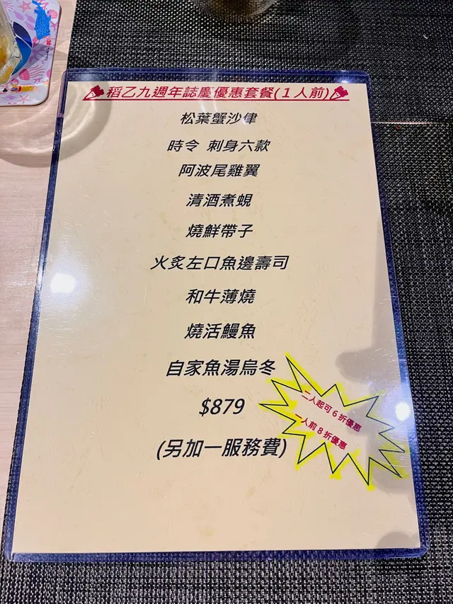稻乙九周年喇~呢間日本菜雖然低調,但有實力嘅就一定儲到一班長期忠實擁躉。近日餐廳為慶祝九歲生日,推出期間限定「九周年誌慶優惠套餐」,預先訂座可享可享一人8折、二人起仲有6折,部分飲品仲買一送一,真係好抵食。「九周年誌慶優惠套餐」:🥢松葉蟹沙侓🥢時令刺身🥢阿波尾雞翼🥢清酒煮蜆🥢燒鮮帶子🥢火炙左口魚邊壽司🥢和牛薄燒🥢燒活鰻魚🥢自家魚湯烏冬超級豐富!個人好喜歡個清酒煮蜆,蜆肉超大粒超甜,湯底以昆布、菇菌等熬煮、加上淡淡酒香,好想飲多碗;燒鮮帶子又係出色,勁肥美,炙燒後鮮甜得黎又香口;自家魚湯烏冬看似簡單,但個魚湯濃郁得誇張,好好飲。…查看更多