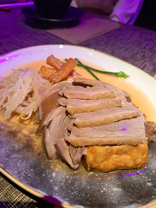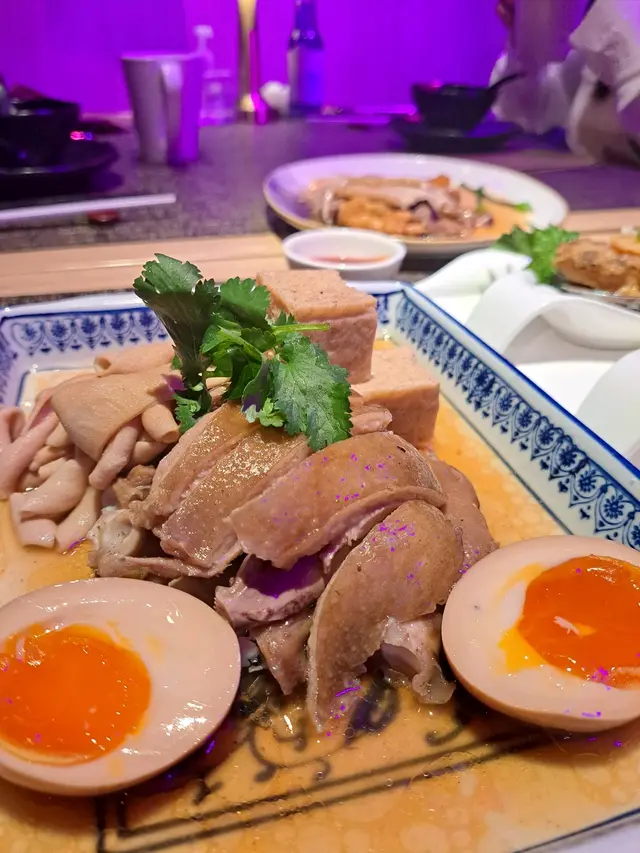 Went here with colleagues for farewell dinner. .We ordered Goldern Salted Egg Chicken Wings, Marinated Abalone, Deep Fried Stinky Tofu, Regular Marinated Goose, Stir Fried White Bitter Melon with Angus Beef, Marinated Combinations and Fried Rice with Tiger Prawns. The Chicken Wings looked appetising with its golden and crispy exterior. The wings tasted savoury with the salted egg powder. The Abalone was well-marinated and fresh. Its chewy texture enhanced its attractiveness. The Marinated Combinations included marinated goose slides, goose feat, goose wing, goose intestine, egg and honeycomb tofu. The goose slides were meaty with a balanced ratio of fat and meat. Liked the runny egg yolk of the soft boiled eggs. The Fried Rice was covered with pork floss and hotly-served. The rice was grainy and the tiger prawn was huge. Not a fan of the Stinky Tofu though. It tasted a bit strange and was too soft. For dessert, we got Strawberry Souffle Pancake with Vanilla Ice-cream in Rose Flavour and Eight Treasure Ice. Liked the Souffle Pancake more. The pancake was soft with a creamy strawberry interior. The vanilla ice cream enhanced the sweetness subtly..Prettily decorated with neon lights and flowers, the resto tried to re-enact the scene of the Taiwanese TV drama Light the Night. .The food was quite pricey and sometimes the staff seemed pretty confused when we requested for sth. …查看更多