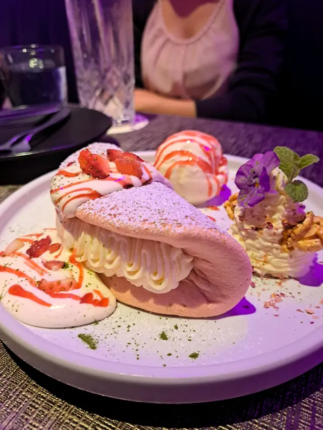 Strawberry Souffle Pancake with Vanilla Ice-cream in Rose Flavour