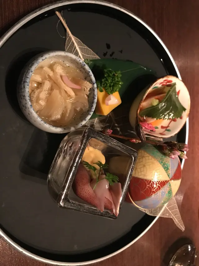 和朋友一起去尝试四季酒店里的这家日餐,结果是非常失望! 从一开始进门服务就很差 ,因为我一个人先到的,reception给了一脸不屑的表情把我带进餐厅。点了1220的怀石寿司套餐:前菜:四道前菜没有什么特别 无功无过刺身: 给了薄切油甘鱼 非常普通寿司1组: 6个手握寿司拼盘,内含中吞拿鱼腩和大吞拿鱼腩,感觉鱼不是很新鲜寿司2组: 有海胆,鱼子和吞拿鱼溶,非常普通蒸蛋碗甜品讲真这家的寿司还不如千两的新鲜 真的不知道怎么在5星级酒店里生存下来的 性价比低 不推荐前往