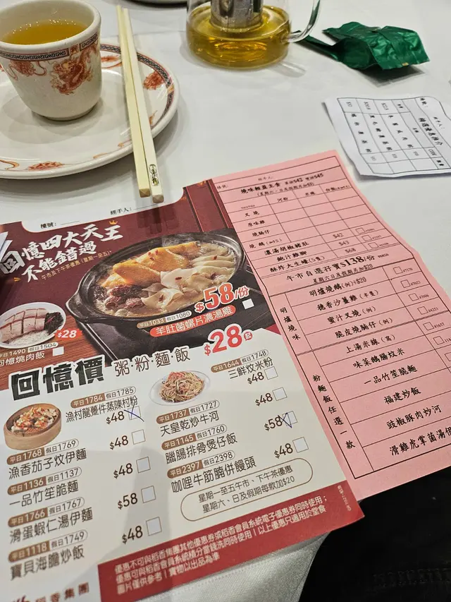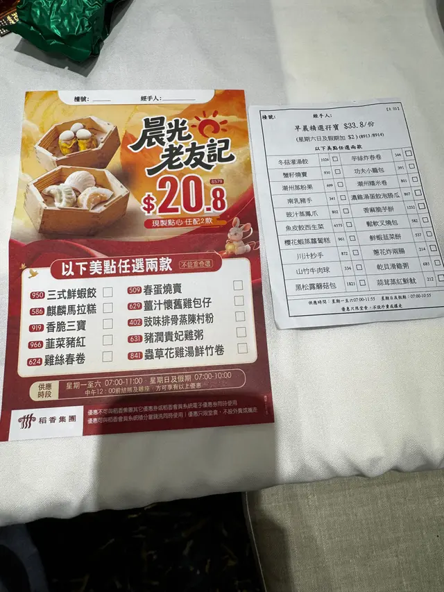 2025年9月5日 星期五終於放完大假呢幾日開始返工真係有啲攰,而且天氣實在太熱,連屋企人都無心機煮飯,於是乎夜晚直接出街食飯最後選擇左稻香既晚市,因為餐廳到8點半後入座火鍋湯底有半價優惠,而且其他食物都只係3.8折,真係抵到爛,回歸90年代既價錢,所以就決定齊齊打邊爐同場仲有小活動環節,只要$48就可以參加一次,需要30秒內用單手任拎啤酒,能夠堅持10秒就得,拎幾多支就送幾多支,而且如果拎到7支就可以另外用$9.9加購一隻新鮮龍蝦添,真係好吸引我哋當然唔執輸即刻排隊參加,最後都好彩成功拎到5支,平均每支啤酒都只係$9左右,夠抵飲講返個火鍋,我哋要左菌皇竹笙鍋,一打開蓋就聞到陣陣菇香,湯底清澈但味道濃郁,而且帶有淡淡草本氣息竹笙爽脆,吸收晒菇湯精華,各款菇類都層次分明,口感由嫩到彈,齒頰留香,飲完湯有種身心舒暢嘅感覺唔洗幾耐所有野食都已經到齊,十分豐富,擺滿晒成張枱當中最吸引既當然係呢個安格斯牛盤,除咗因為價錢由$168到現在優惠價$68之外,牛肉切得薄而均勻,油花分佈靚到好似大理石咁,落鍋一燙即熟,入口嫩滑得嚟又唔失牛味,啖啖都係肉香同脂香交織嘅享受配埋牛筋、牛肚同肉丸,口感層次豐富,好似黎左一次牛肉界巡禮咁之後有五福蔬菜籃,色彩繽紛又新鮮,菇菌香氣自然,粟米甜得嚟又有啲脆,南瓜綿密帶些微甘,白菜爽口唔澀,仲有啲生菜同蕃茄點綴,落鍋一煮,湯底即刻升級,清新得嚟又唔失層次,啱晒打邊爐時平衡油膩呢個係半隻地雞,雞皮呈天然黃金色,睇落已經好吸引淥熟之後,雞肉嫩滑得嚟又有咬口,唔會粉粉地脂肪分布平均,食落唔油膩但又夠香,冇腥味,啖啖都係雞味,唔靠醬料都好好食最後由左至右分別係手打蝦滑、墨魚滑同手打鯪魚滑,蝦滑入口爽彈,蝦肉鮮甜得嚟帶少少海水味,咬落去有啲爆汁感,唔使點醬都夠味,啖啖都係真材實料,而墨魚滑就質感煙韌,咬落去有啲彈牙,味道偏清淡但有淡淡海鮮香,啲墨魚粒粒分佈平均,口感層次豐富鯪魚滑則比較粗獷,魚味濃郁,仲有啲微微嘅薑香,口感冇咁滑但好實在,啲魚骨已經打碎晒,食落唔怕卡喉埋單五個人都唔使$600,真係好抵食!!…查看更多