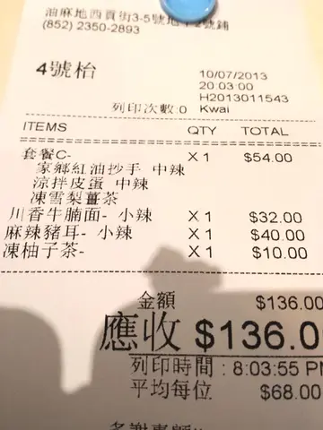 本來以為這只是另一間酸辣粉店,到坐落才知道原來「穆姑娘」是來自國內的連鎖川菜過江龍,令我不禁對這餐有點期待。店內以紅色為主,打理得算整齊。2排卡位座位,坐得有點逼。第一次來,就來碗中辣穆姑娘酸辣粉 ($28)。不過等了又等,我的酸辣粉還沒有到。這夜所見,店內不少食客都在追單,或有送錯單的情況,服務看來有點混亂。終於酸辣粉到了。想不到中辣的辣度十足,要立刻點了杯凍檸茶($15)來救火。凍檸茶茶香一般,不過勝在夠冰凍。薯粉煮得過份軟腍,欠了QQ的食感。配料主要是花生、脆酸菜和生菜,整體只是覺得這碗粉十分一般,與期望落差頗大呢。