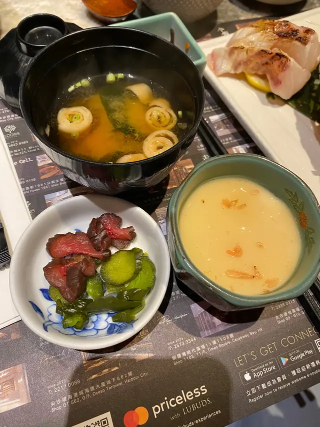 平時行開又一城都冇為意,原來UG層藏住一間裝修雅緻、燈光柔和嘅日式餐廳~ 一入去就聞到淡淡炭燒香,環境舒服到呢⋯⋯即刻想坐低飲杯嘢!✨———🍱 今次試咗咩好嘢 ———🔥【特上刺身拼盤】$698一上枱就嘩一聲!厚切拖羅、帶子、赤身全部新鮮到發光✨ 入口即化唔在講,最正係佢哋配咗自家製酸汁,清新得嚟唔會搶咗魚鮮~ 影相打卡必點!🐟【章紅魚柚子沙律】$138清新之選!章紅魚刺身配上柚子汁同,開胃到食完想encore~ 個汁調得啱啱好,酸酸甜甜好適合夏天食!🍶【鉾杉柚子濁り酒】(杯)$58必飲推薦!柚子香超突出,濁酒口感綿滑,飲落順喉得嚟唔會太甜~ 配刺身或者燒物都一流!🔥【火炙吞拿魚腩壽司】$128/件邪惡但忍唔住食咗兩件!師傅火炙時間掌握得剛剛好,魚油香爆發出嚟~ 飯粒醋味溫和,同魚腩超夾!🐮【日本佐賀和牛粒】$168炭燒香超誘人~ 外層微脆,內裡肉汁鎖得住,咬落去juicy到唔使點醬已經好正!🍚【明太子茶漬飯】$88食到尾聲嚟碗暖胃茶漬飯~ 明太子鹹香配上茶湯,清淡得嚟又有口感,完美收尾!🌽【燒粟米】$30平平無奇但係有驚喜!以為普通燒粟米?錯!佢哋用咗牛油同少少鹽燒,咬落去爆汁之餘仲有炭火香~ 食完濃味嘢之後清一清個口,完美平衡返!🍠【鱈魚乾】$73送酒神器!鱈魚乾烤到脆卜卜,點少少蛋黃醬~ 鹹香得嚟唔會硬邦邦,一路傾偈一路食不知不覺清咗一碟😝 同朋友飲嘢嘅話一定要叫!🍣【鰻魚壽司 (2件)】$88鰻魚控注意!佢哋嘅鰻魚係關西風格(即係直燒唔蒸),所以魚皮特別香脆~ 醬汁唔會死甜,飯嘅溫度同醋味都平衡得好好。一件真係唔夠喉⋯⋯🍹【荔枝梳打】$48唔飲酒嘅朋友可以試呢杯!荔枝味好天然,唔係藥水味~ 甜度適中,仲有幾粒真・荔枝肉喺底!清爽解膩,配燒物超夾~🍵【黑松露野菌清湯】$58黑松露香氣撲鼻,湯底用咗幾種野菌熬成,飲落好暖胃~ 食刺身前飲幾口打開味蕾一流!🌟總評:服務態度好好,店員會細心介紹菜式!今次試咗成枱嘢食,完全無伏味~特別欣賞佢哋嘅食材質素同細節處理,雖然價錢中上,但絕對對得住個品質!下次慶祝紀念日一定會再嚟~💯…查看更多