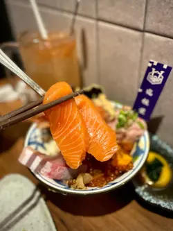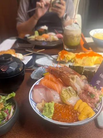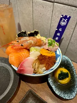 朋友話辛苦搵嚟志在食,所以,奢華少少嗌咗個「究極丼」,可惜喺海膽剛無貨,但會用番時令刺身補上。睇見份丼真喺好吸引,有帶子、三文魚籽、炙燒左口魚、油甘魚、三文魚、赤身、拖羅蓉、大赤蝦,仲搭上一隻蛋香十足嘅蘭王蛋,外觀非常吸晴。佢話啲刺身好新鮮,味道鮮甜,每款刺身都超好食,真喺無咩挑剔位,夠晒足料,物超所值。